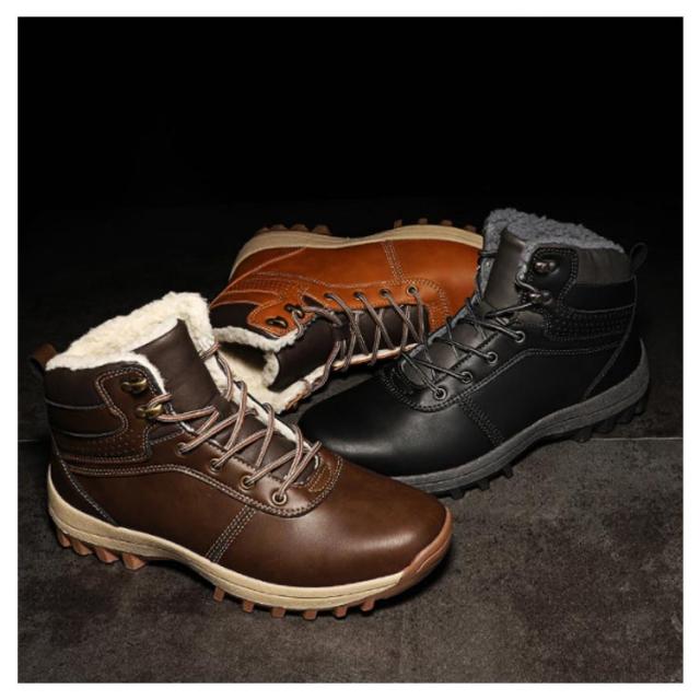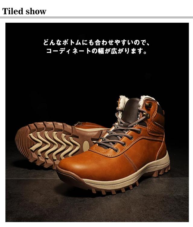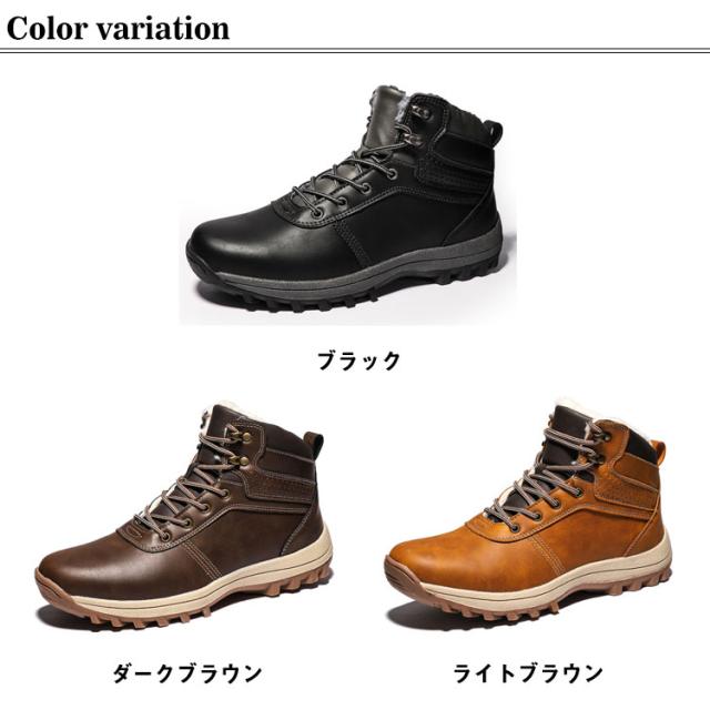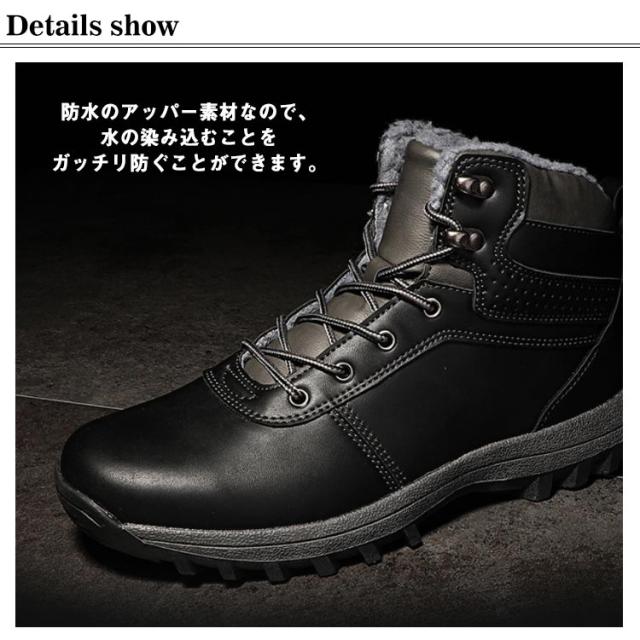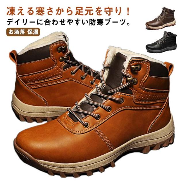 スノーブーツ PUレザー メンズ ショートブーツ スノーシューズ 裏ボア ミッドブーツ コンフォート 編み上げ カジュアル 防水 撥水 防寒 お洒落 保温 冬用 アウトドア 通勤 通学 送料無料