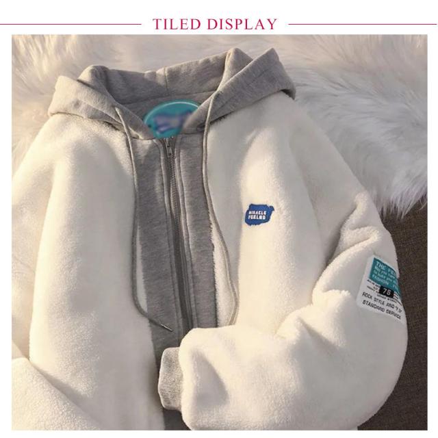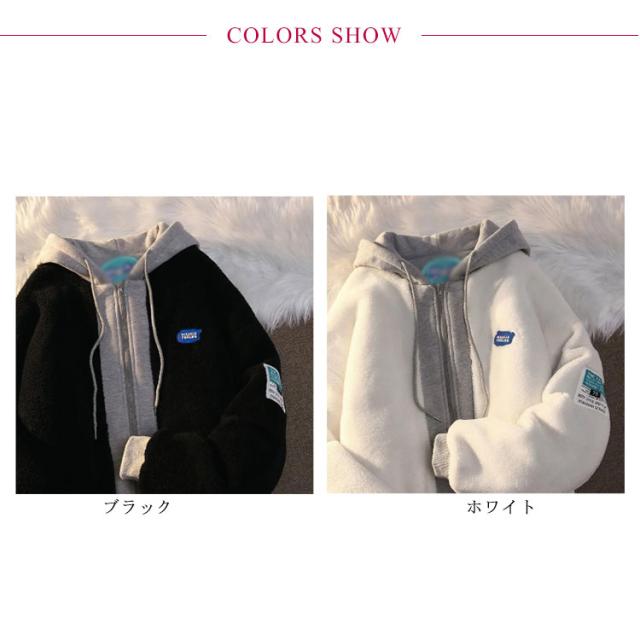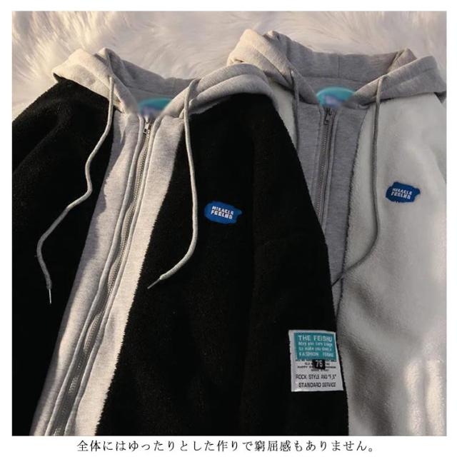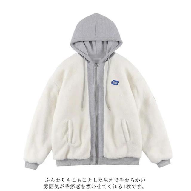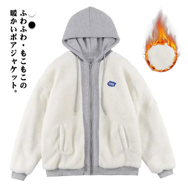 重ね着風 ボアコート メンズ ボアジャケット フリースジャケット もこもこ レディース 男女兼用 ボアブルゾン 大きいサイズ アウター オーバーサイズ パーカー フード付き 異素材切り替え 秋冬