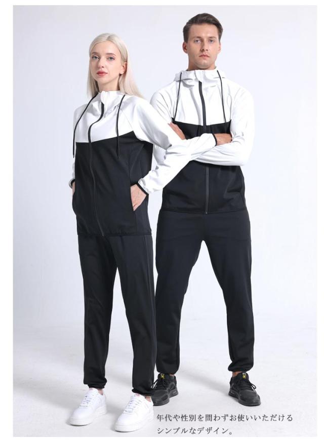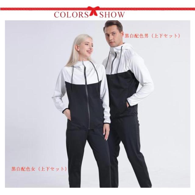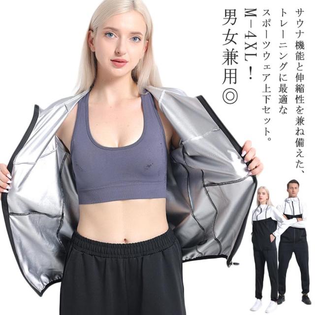 サウナスーツ 爆汗 フルジップ 配色 メンズ レディース スポーツウェア 上下セット ダイエットスーツ ヨガウェア 大きいサイズ ストレッチ ウォーキング 筋トレ 汗 ジョギング 発汗 洗濯可能 フィットネス トレーニング M L XL 2XL 3XL 4XL【送無】