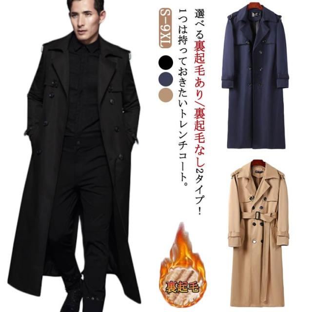 トレンチコート メンズ 長袖 ロングコート ダブルコート 2タイプ 裏起毛 厚手 薄手 ロング丈 ビジネスコート 無地 折り襟 アウター スプリングコート ダブル ゆったり 大きいサイズ カジュアル きれいめ 仕事 通勤 紳士 春服 冬服 秋服 春 秋 冬 送料無料