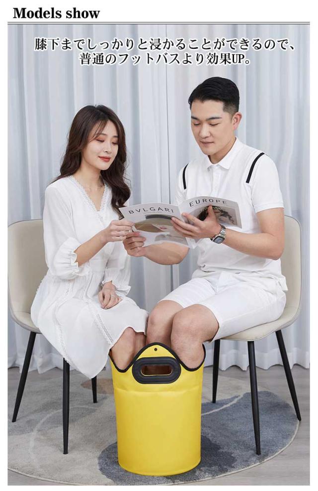 | リラックスタイムに欠かせない!折りたたみ式の足湯バケツです。 膝下までしっかりと浸かることができるので、普通のフットバスより効果UP。 外はPVC素材で、防汚性・耐水性に優れた!内蔵アルミニウム素材で保温力も抜群。 軽くて折りたためやすく、使わないときはコンパクトに折りたたんで収納できます。 しっかりとしている形を維持し、洗濯中に水は外にこぼれ出せないようにできます。 | |