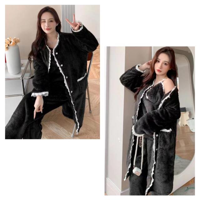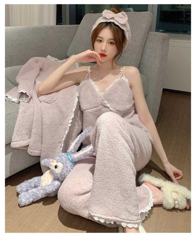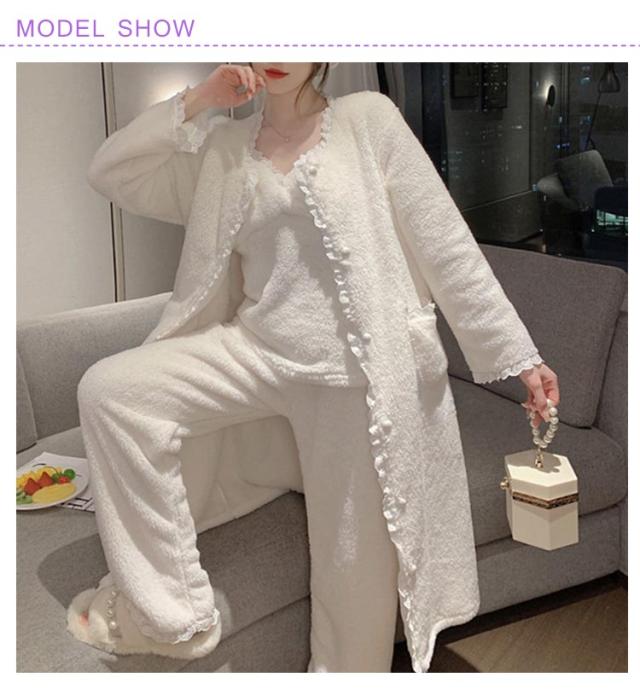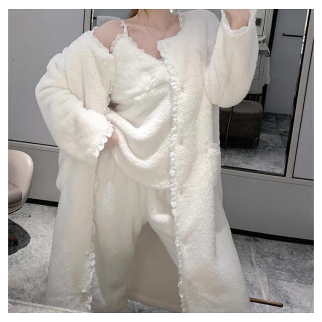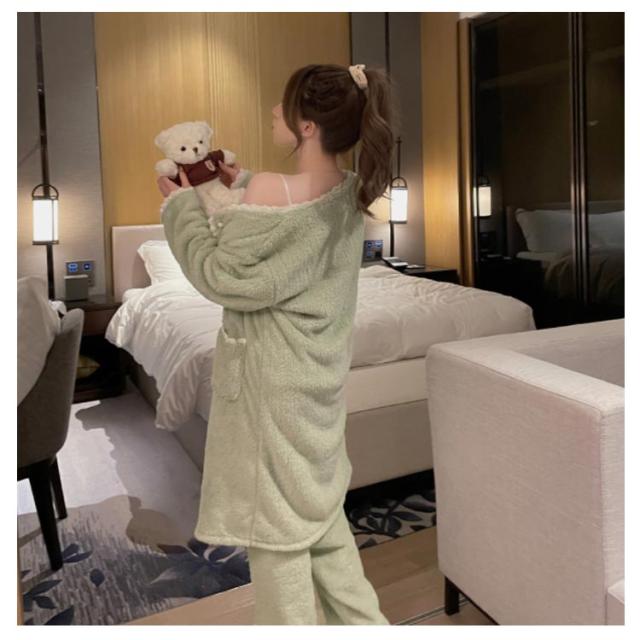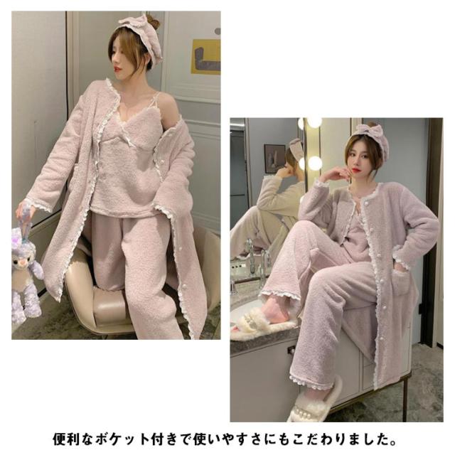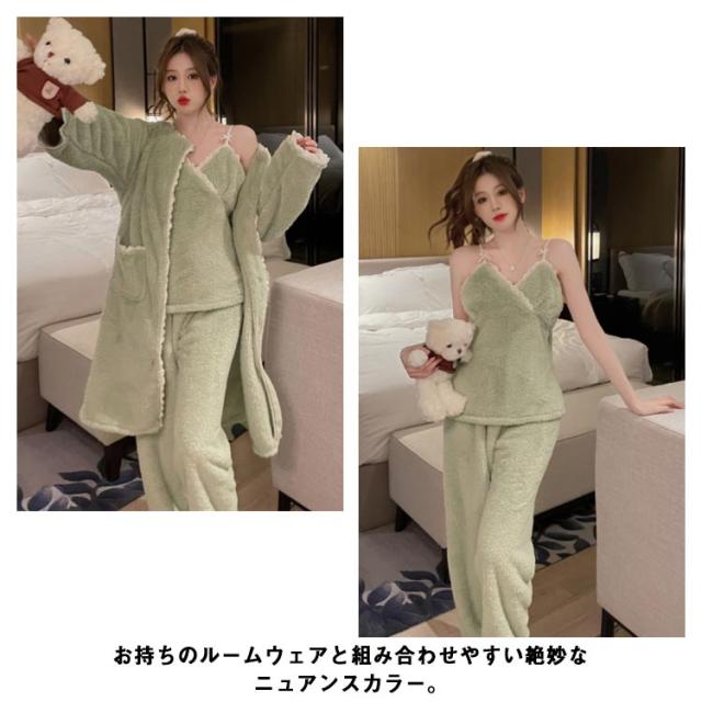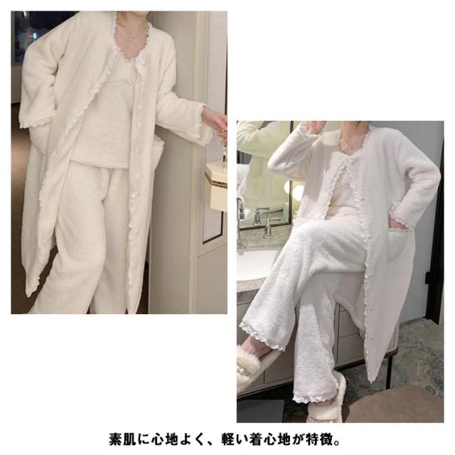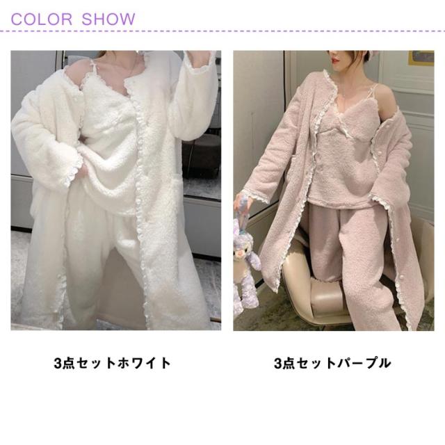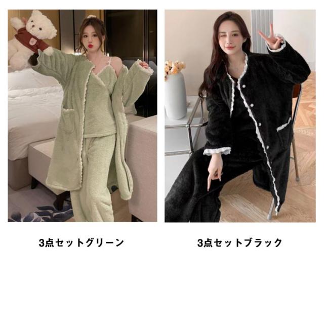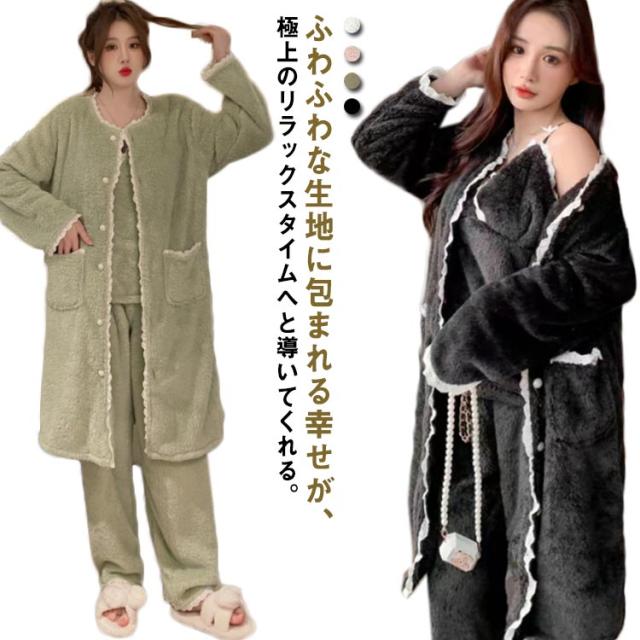 3点セット ルームウェア レディース もこもこ モコモコ 冬 可愛い カーディガン 前開き 前開きロングカーディガン ワンピース キャミソール Vネック 冬用 あったか 着る毛布 ロング かわいい 暖かい セットアップ パジャマ 冬 冬用