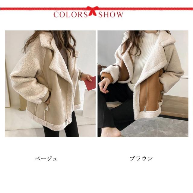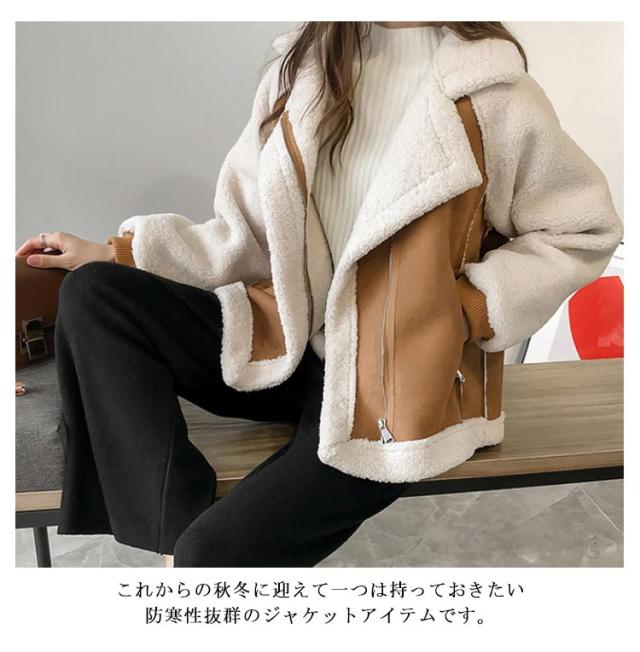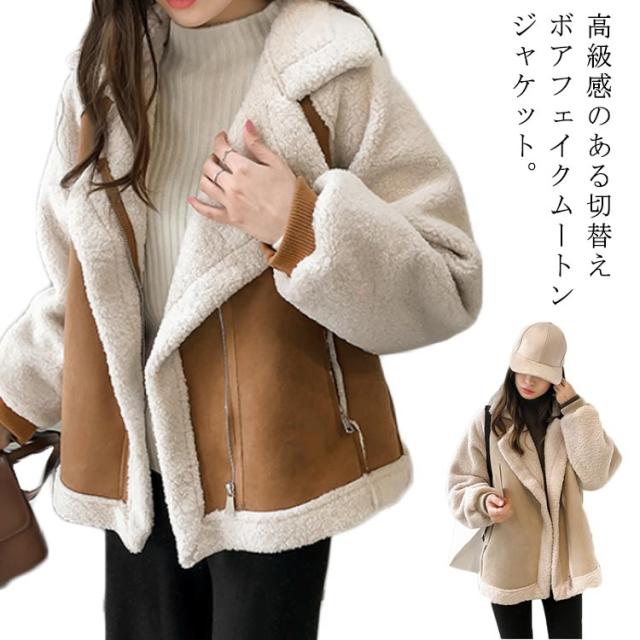 ムートンジャケット ボア切り替え ムートンコート 裏ボア レディース ボアジャケット ボアコート 暖かボア ジャケット アウター 防寒 厚手 極厚 裏起毛 大きいサイズ 2022 ライダースジャケット ジップアップ