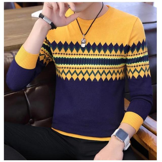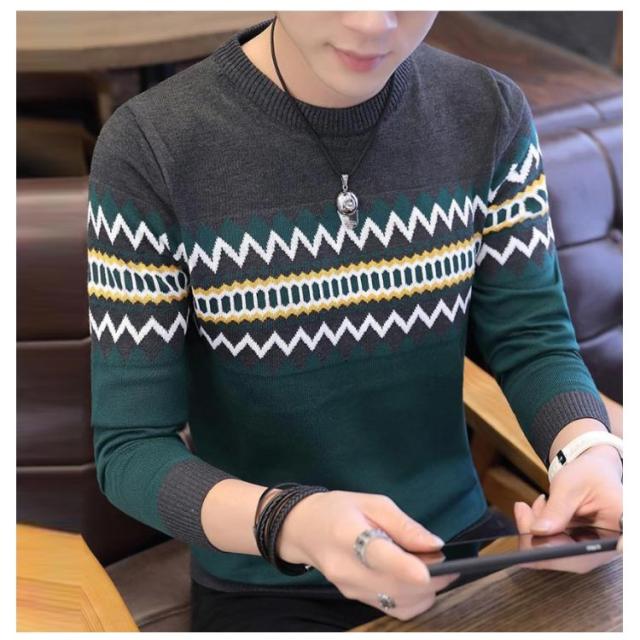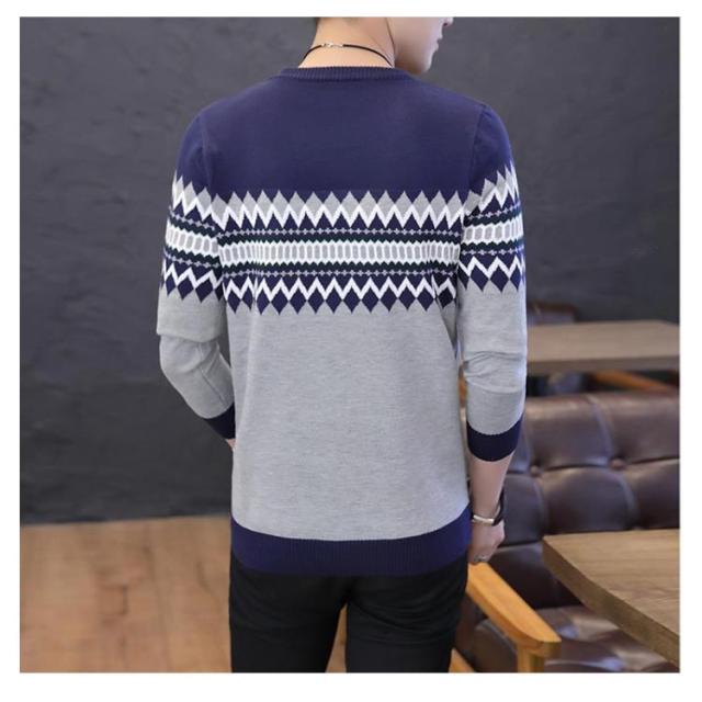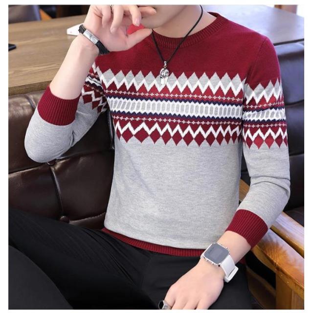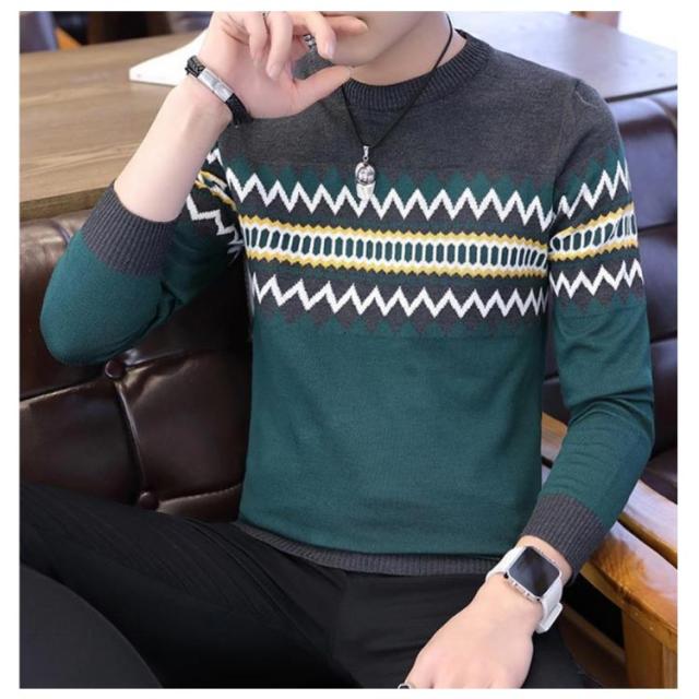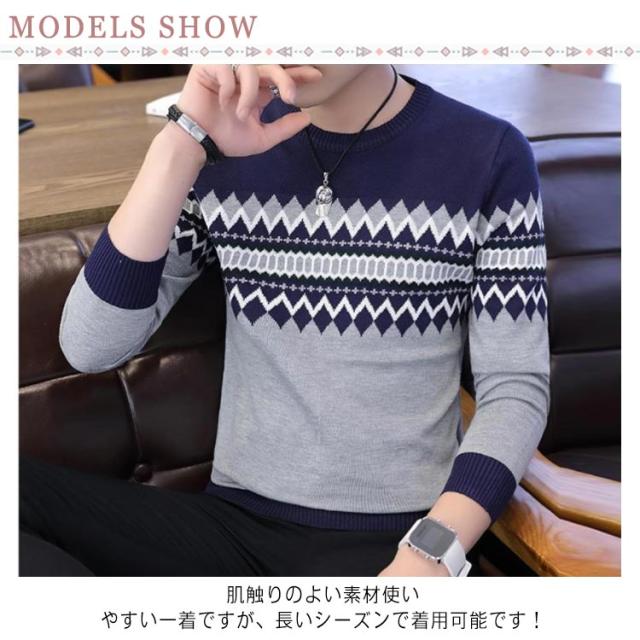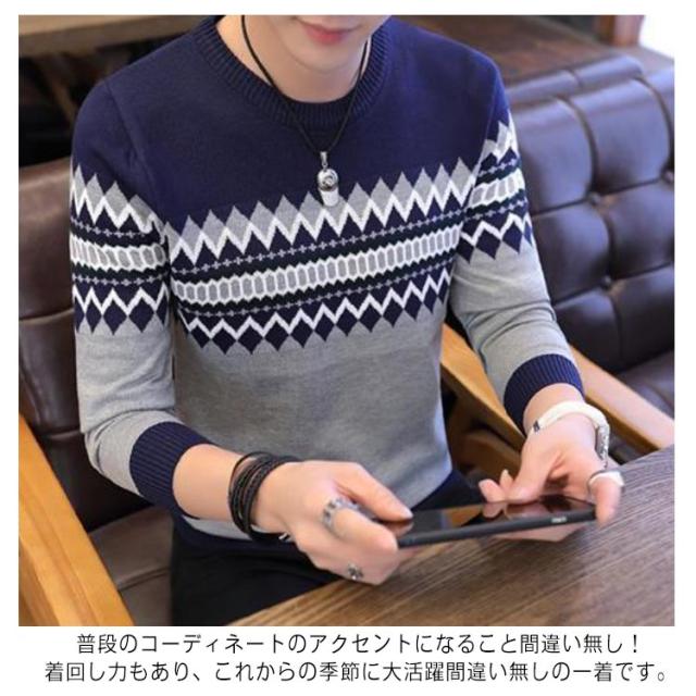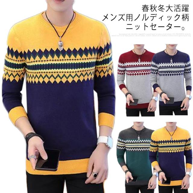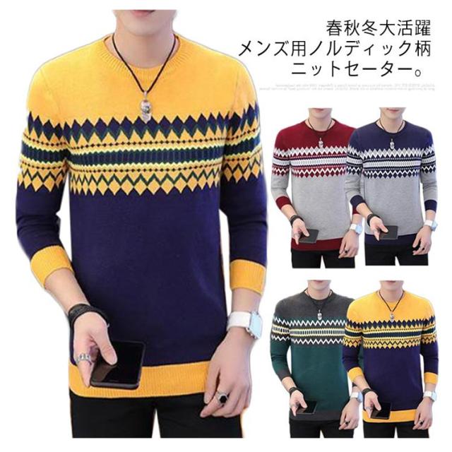 ノルディック柄 ニット セーター メンズ 長袖 ラウンドネック ニットセーター ニット トップス プルオーバー 細身 着やせ レイヤード 春服 秋服 冬服 おしゃれ カジュアル 幾何学 アーガイル M L XL 2XL 3XL