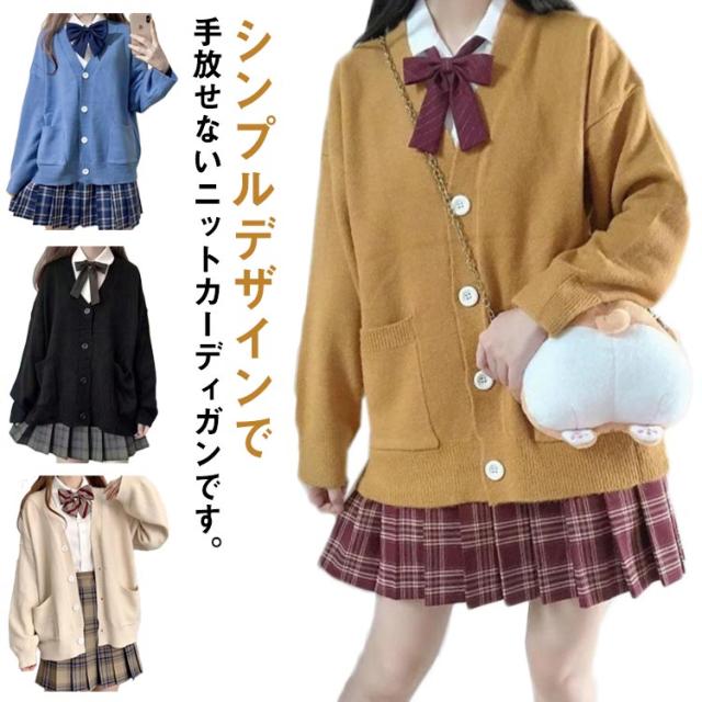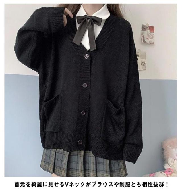 スクールカーディガン 学生服 入学 通学 Vネック ニットカーディガン レディース 学校 スクール 制服 無地 女子 高校生 中学生 大きめ ゆったり 秋冬 前開き ポケット付き お洒落 送料無料