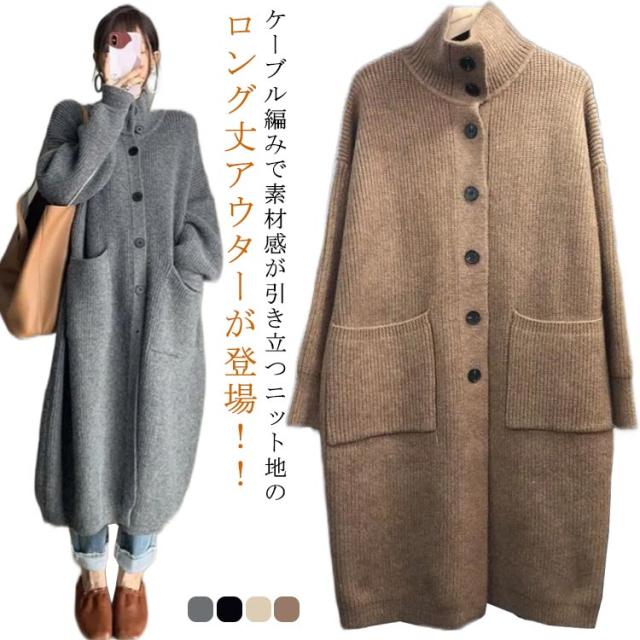 ロングカーディガン コート レディース タートルネック ロング丈 カーディガン アウター 秋冬 コーディガン ガウン コート オーバーサイズ 長袖 羽織り ライトアウター 羽織り 上着 オーバーサイズ 体型カバー 暖かい