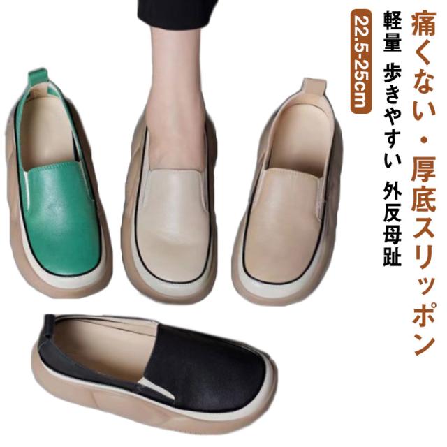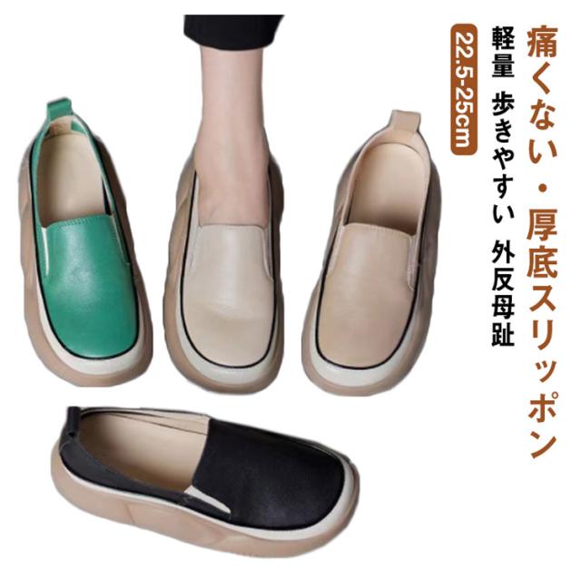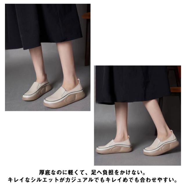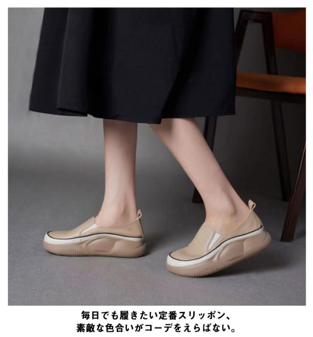 厚底 スリッポン スニーカー パンプス フラットシューズ コンフォートシューズ レディース PUレザー 厚底スニーカー 靴 軽量 歩きやすい 外反母趾 カジュアルシューズ ナースシューズ 看護婦 靴 高校生 中学生 20代30代40代50代