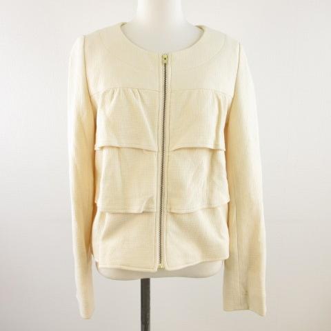 【中古】グローブ grove ノーカラージャケット 長袖 ジップアップ オフホワイト 白 11AR *T231 レディース