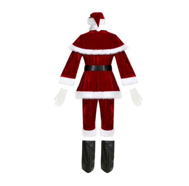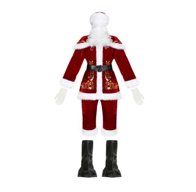 M-4XL サンタクロース コスプレ 衣装 メンズ 9点セット クリスマス衣装 男性 大人 サンタコス コスチューム ひげ かつら サンタ帽子 コスチューム 本格的 イベント パーティー 大きいサイズ ハロウィン 仮装 北欧 上品 ベロア ベルベット ふわふわ フェイクファー