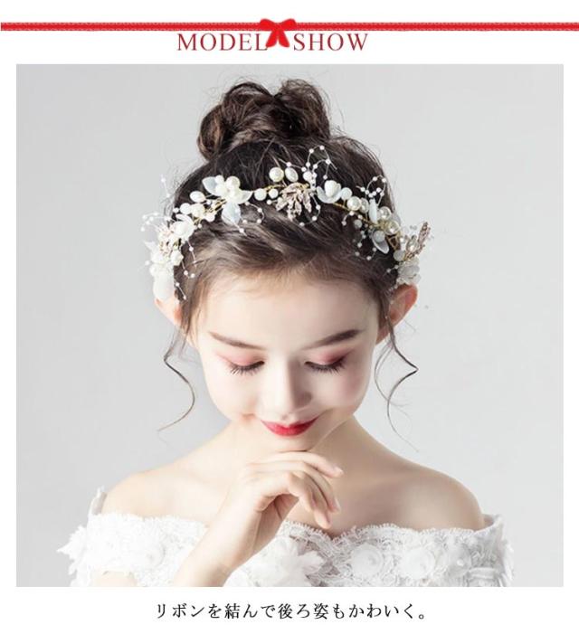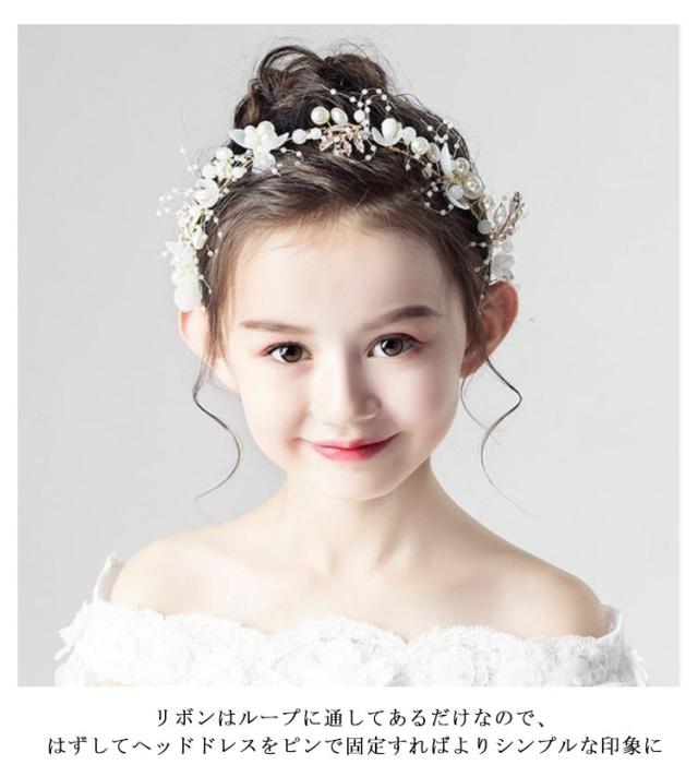 ビジュー付きフラワーティアラ リボンカチューシャ ヘッドドレス アクセサリー カチューシャ ヘアアクセサリー ヘアアレンジ 子供 キッズ用 女の子 発表会 コンクール