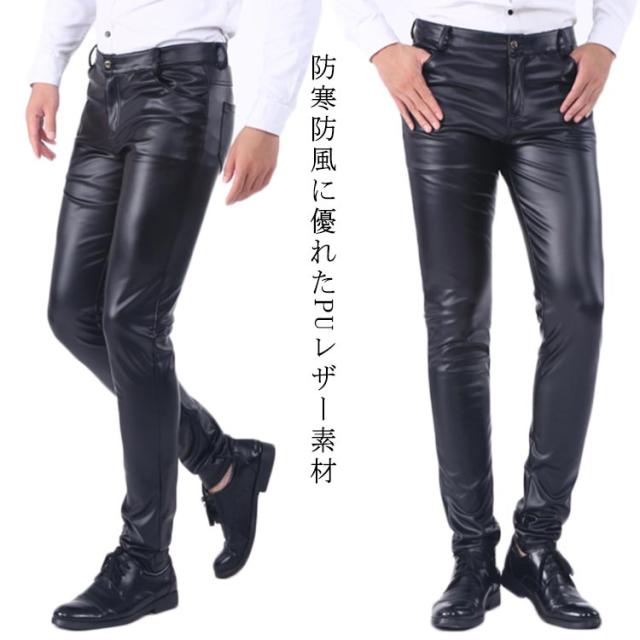 レザーパンツ メンズ PU スキニー 革パンツ 革パン バイク パンツ ライダースパンツ フェイクレザー レザー レザーパンツ ロックパンツ メンズファッション 春 秋