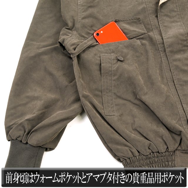 ・気軽に手を入れれるウォームポケットと貴重品を入れるのに便利なアマブタ+ボタン付きのダブルポケット仕様です。