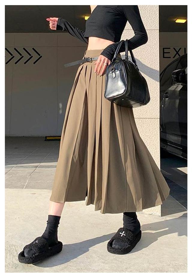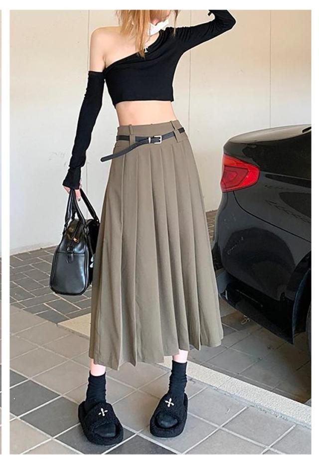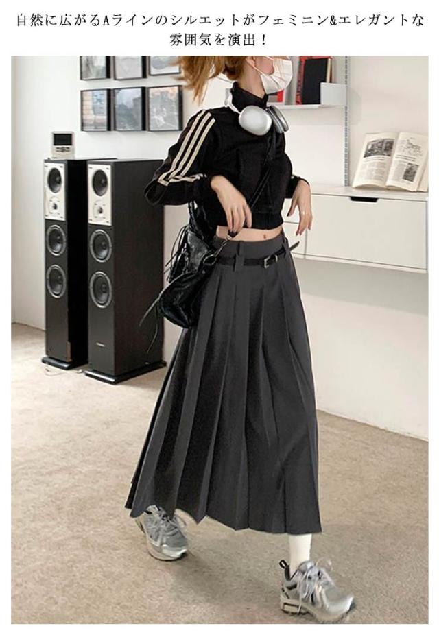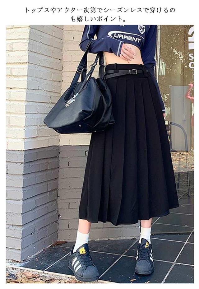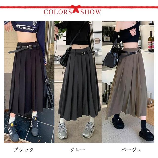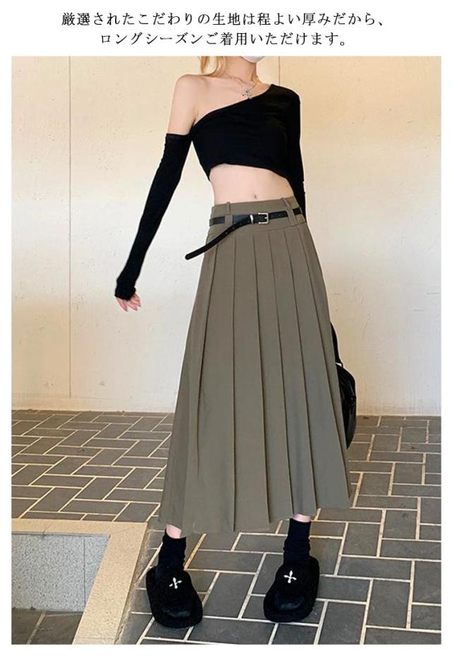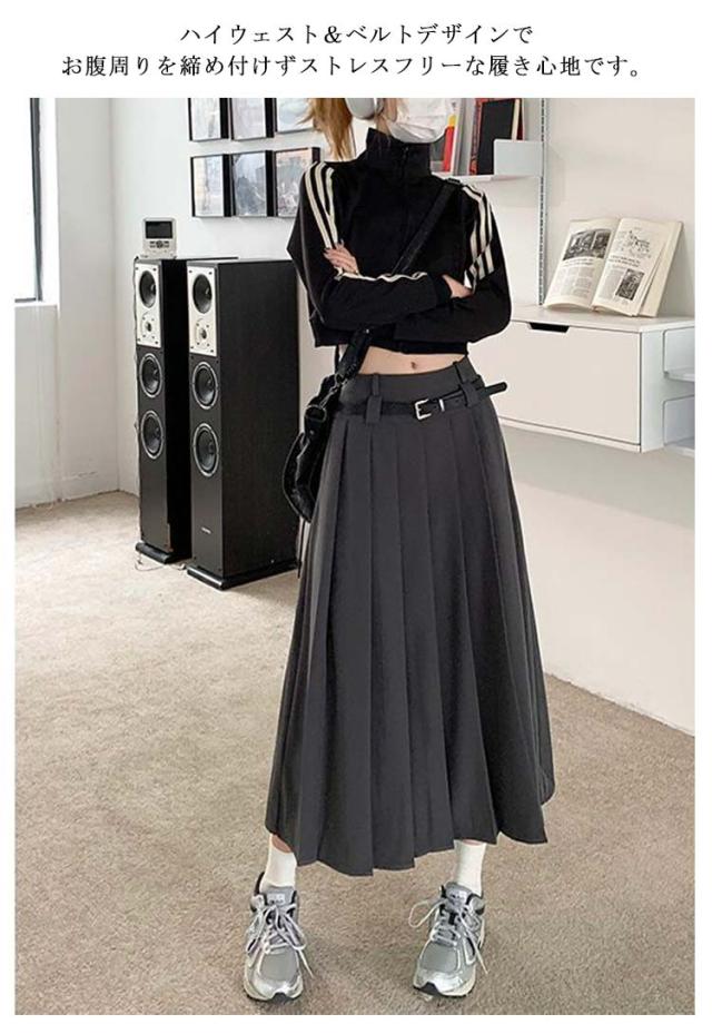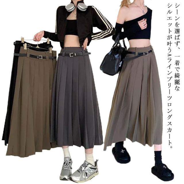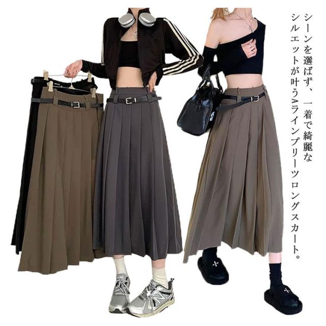 送料無料 ロングスカート プリーツスカート ボトムス レディース ベルト付 プリーツ フレアスカート Aライン 膝下 ひざ下 ハイウエストスカート 無地 オフィス 制服 大人 春 秋 きれいめ ふんわり コーデ 大人カジュアル