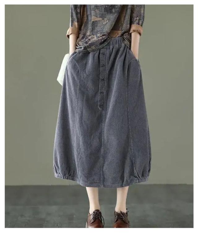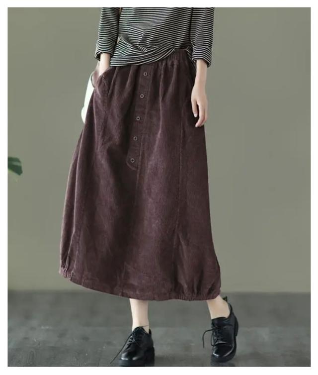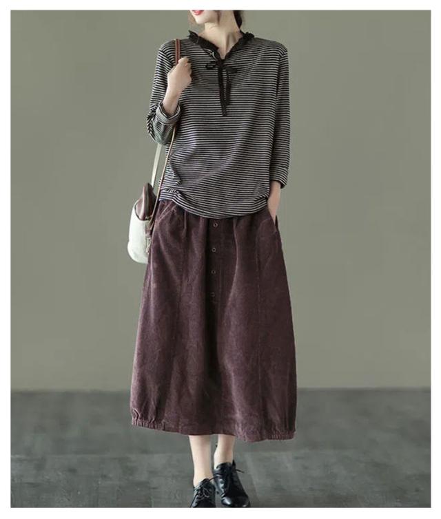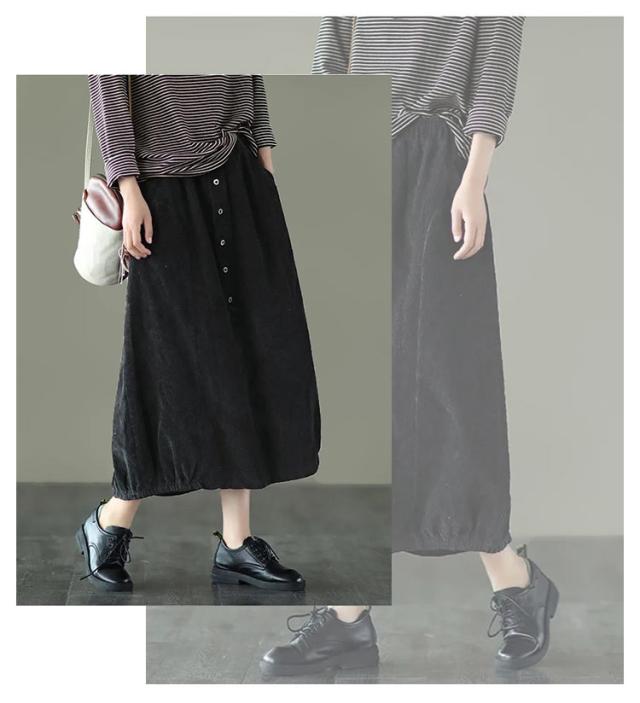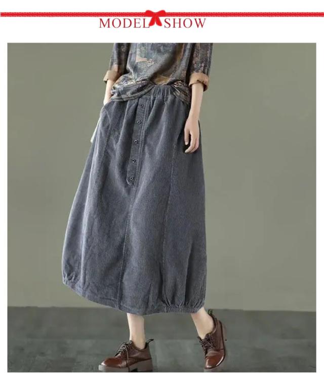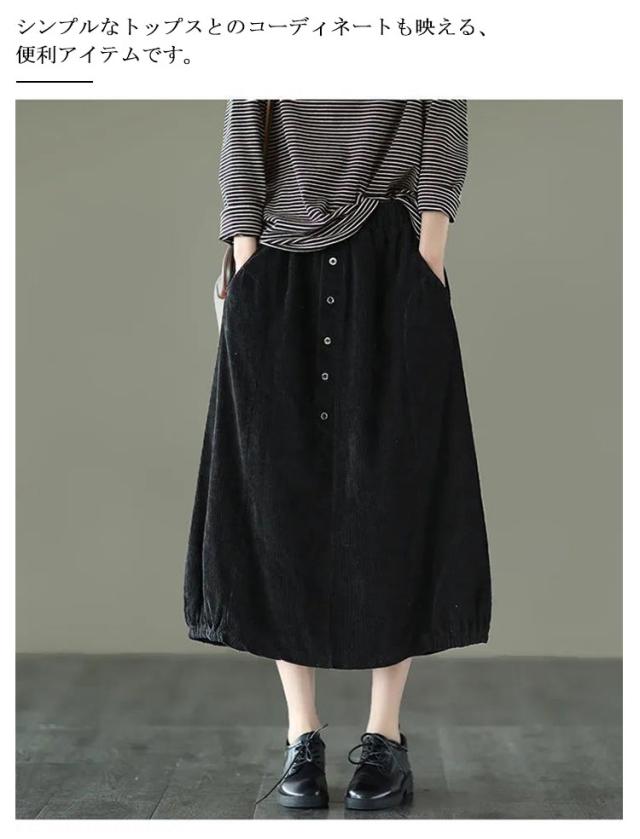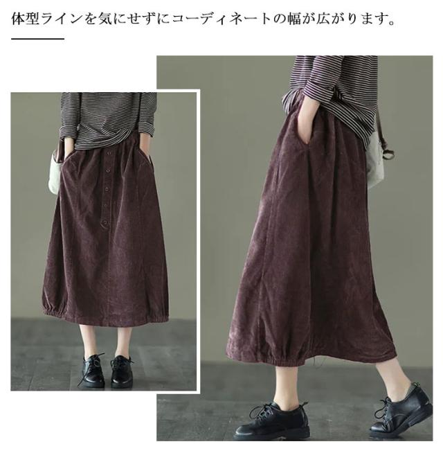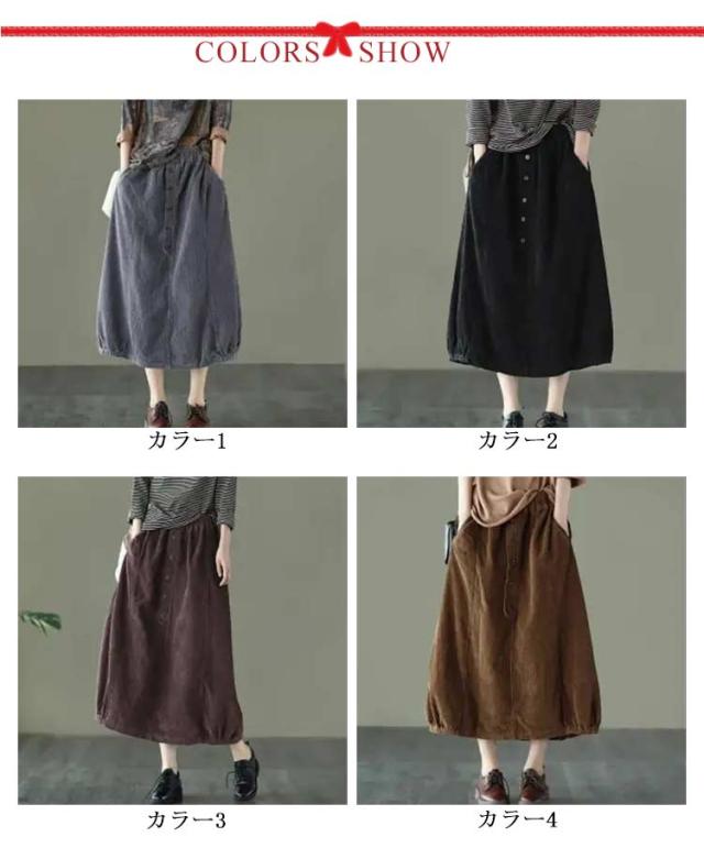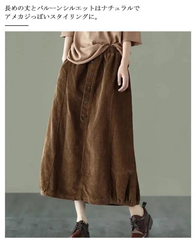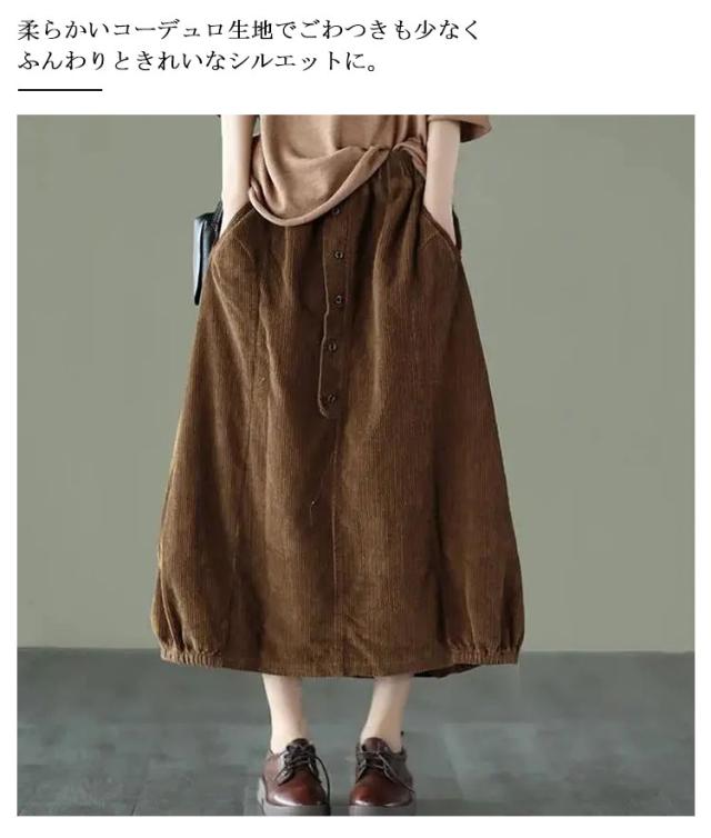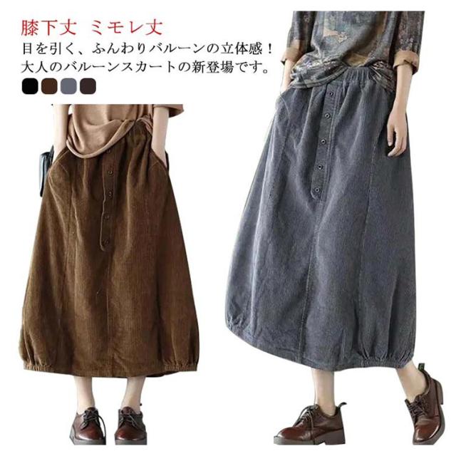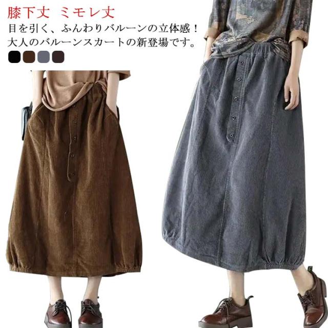 送料無料 バルーンスカート コクーンスカート ロングスカート マキシスカート ひざ下 スカート ウエストゴム ギャザー ボトムス Aライン やわらかい 体型カバー 無地 コーデュロイ 楽ちん ふんわり カジュアル 春 秋 冬
