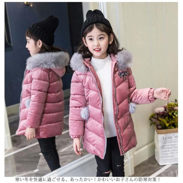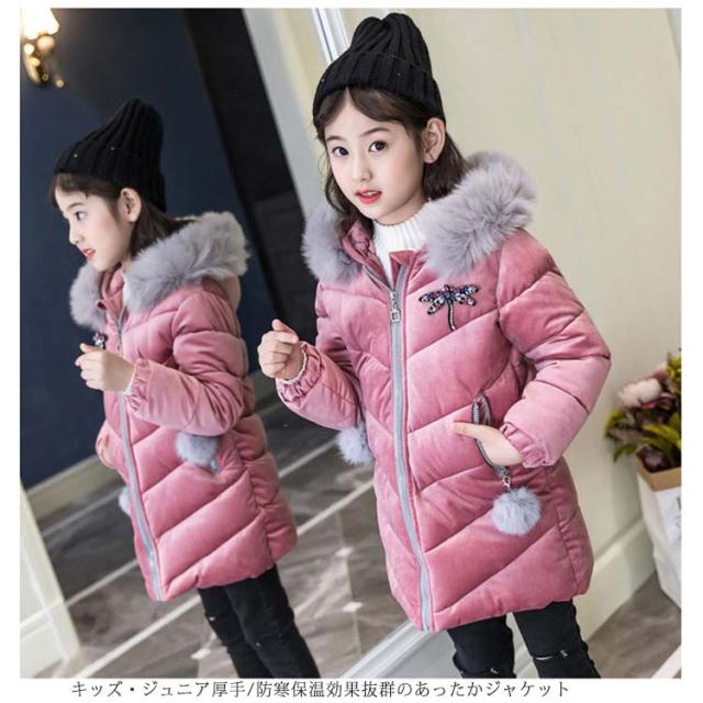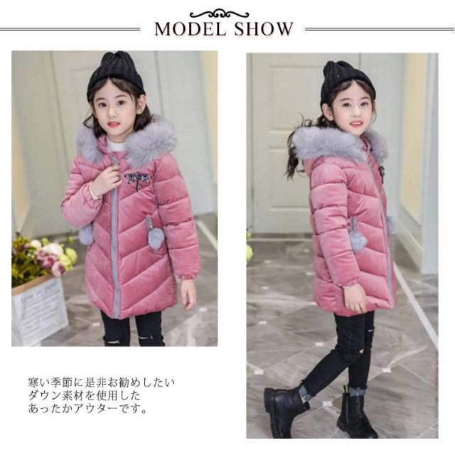 アウター ジュニア ダウンコート ロングコート 子供服 防寒対策 ジャケット 女の子 フード付き 韓国風 子供用 おしゃれ 可愛い シンプル 送料無料 ゆったり コート ミディアム 軽量 ファーコート 防風防寒 もこもこ エレガント 快適 中綿入り 卒業式 小学生
