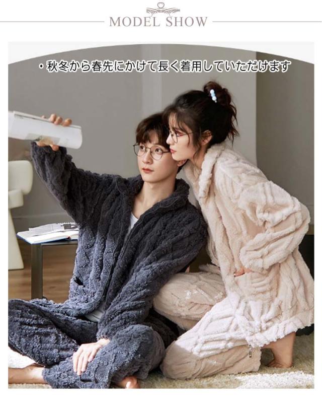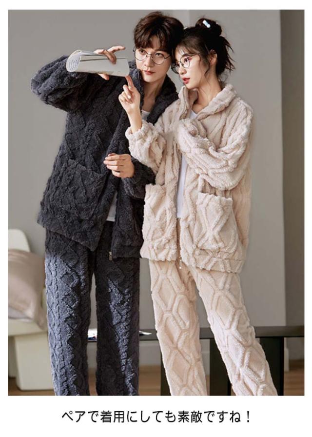 送料無料 ペア パジャマ もこもこ ペアパジャマ 冬 カップル ペア パジャマ 部屋着 長袖 ルームウエア トレーナー ファスナー お揃い 暖かい 秋冬 結婚祝い 上下セット 記念日 彼女 彼氏 厚手 ナイトウエア ペアルック 前開き ギフト カップルウエア クリスマス プレゼント