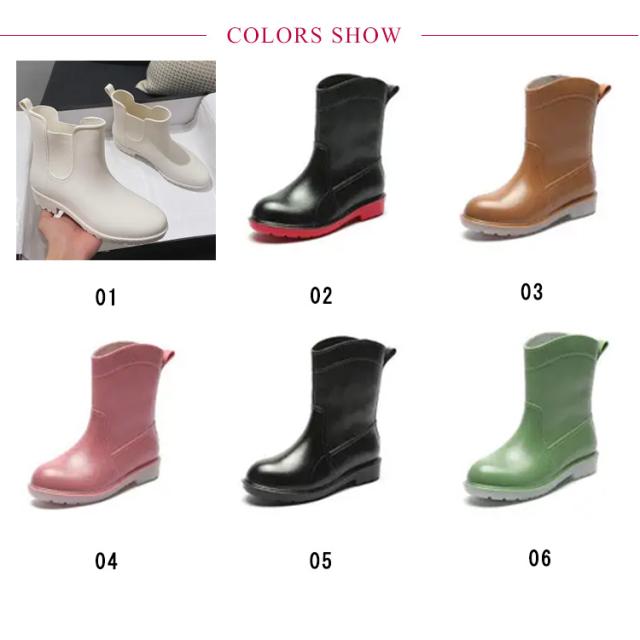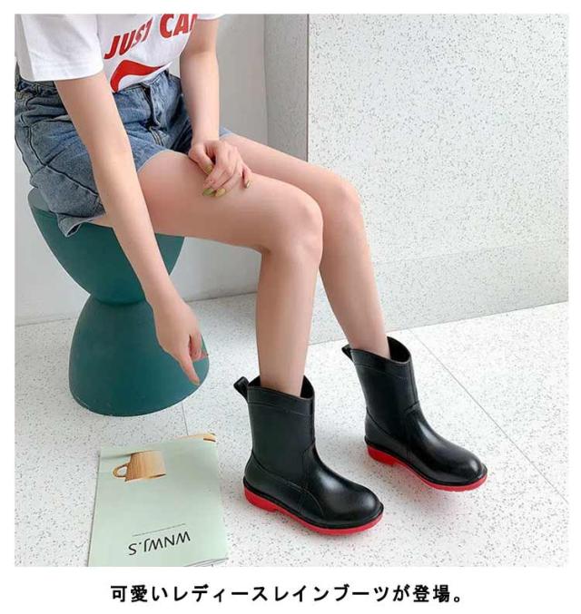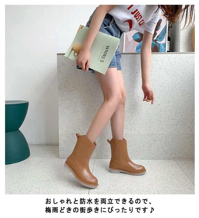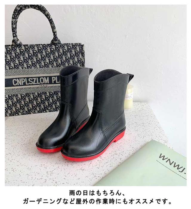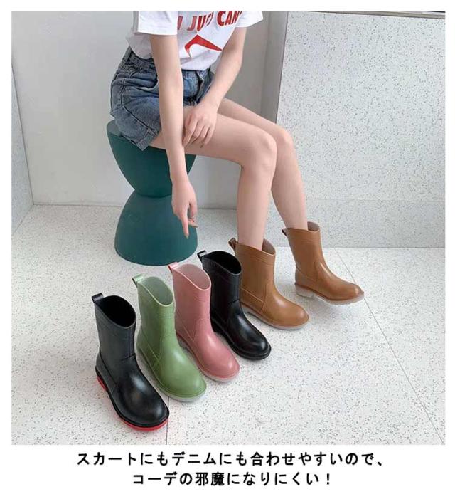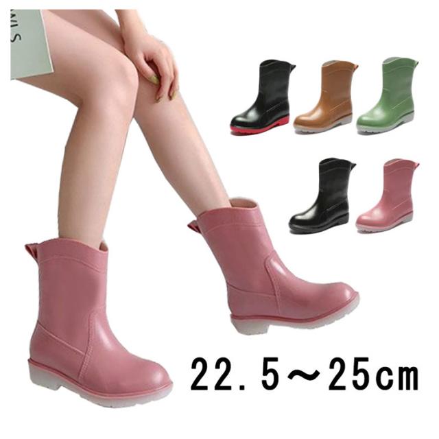 レインブーツ レディース レインシューズ おしゃれ ブーツ ミドル 丈 防水 長靴 雨 雨靴 農作業 園芸 ガーデニング 22.5cm〜25cm ブラック キャメル ピンク グリーン