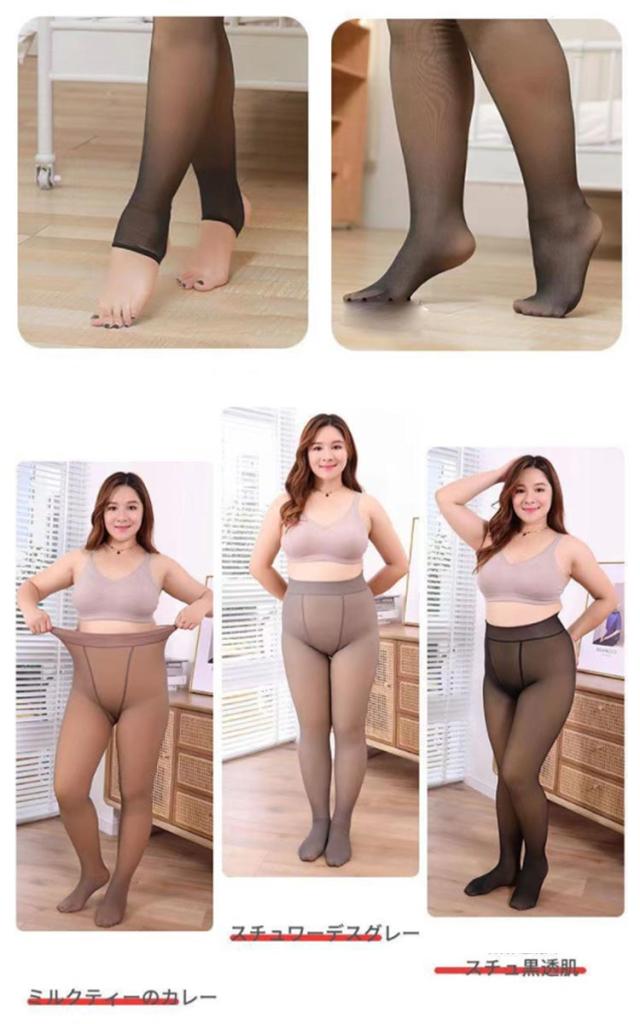 | スーパーストレンチの透け感のある裏起毛タイツ。 表には5種類の素材が混合された弾力性抜群の生地で構成されています。ウエスト、ヒップ、太もも、スネをしっかり包みます。美脚、美尻効果抜群です。 裏には足まで起毛の仕様で、ふんわりあたたかく、熱を逃しません。中の縫い部分は滑らかですっと穿けます。 秘密は特殊な加工の生地にあります。伸縮すると、内側に見えるベージュ色が変化。伸びるほどブラックが薄く、ベージュ色が濃くなって、まるでストッキングを履いている肌の色のよう。上品な透け感がオシャレさと美しいシルエットの脚ラインを演出します。 従来の二重生地の透け感タイツに比べて、こちらのタイツは二重生地ではなく、一体式デザイン、着ることも脱ぐこともしやすい、糸引っ掛けしない。優良な素材を使い、毛玉が起きにくく、足が細く見えるわりに締め付けない着用感を叶えてくれます。 就活、通勤、デート様々なシーンまで活用できる寒い季節のおしゃれに欠かせないアイテムです。体へのフィット感がバッチリ、スッキリとしたレッグラインを見せるレギンスは毎年のアイテム | |