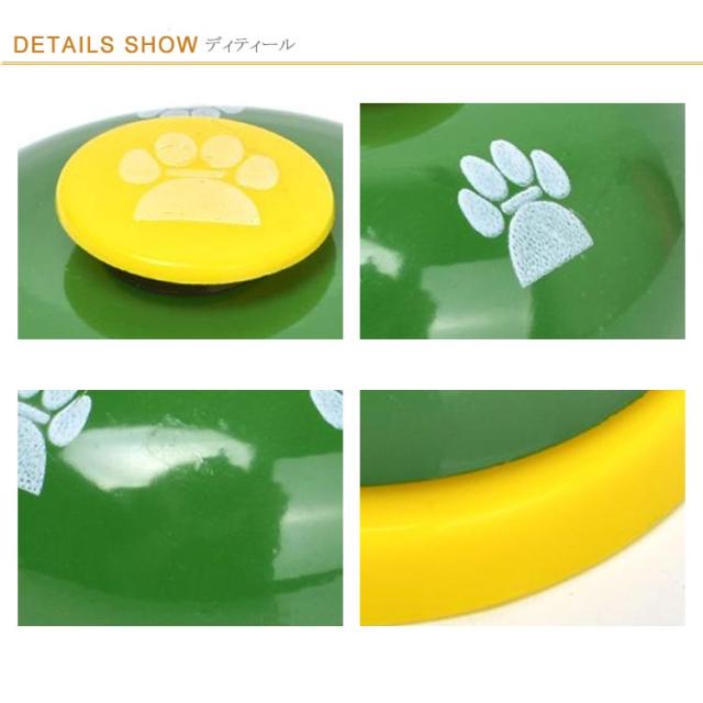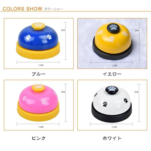 | カラフルでかわいいデザインの、ペット用トレーニング呼び鈴。 受付などの呼び鈴としての使用もできます。 | |