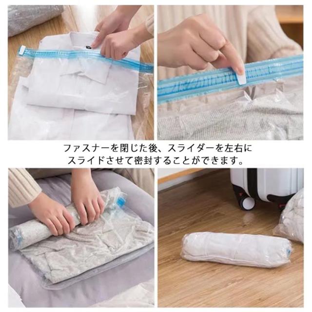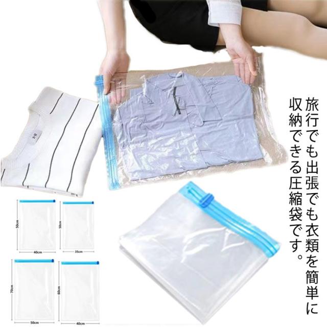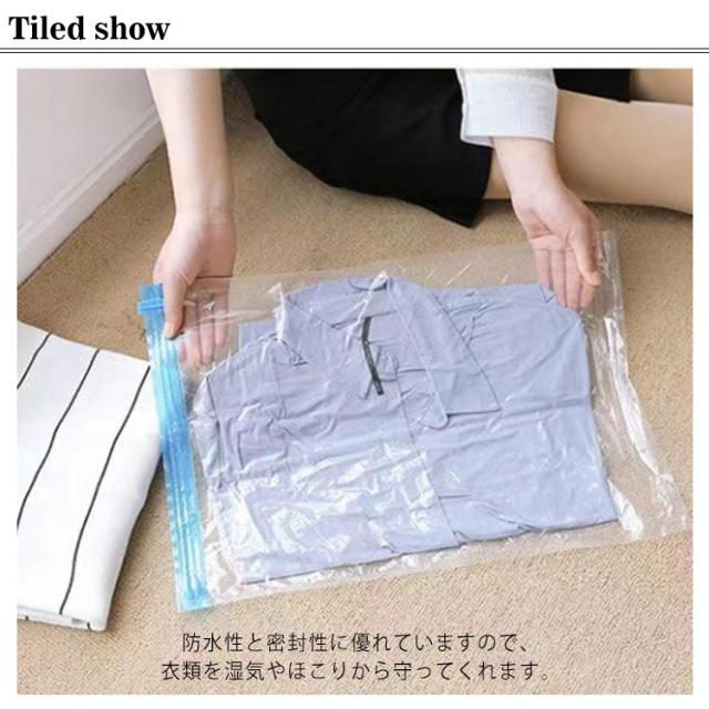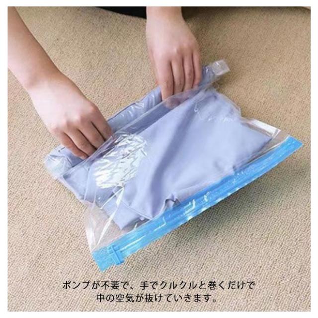 5枚セット 圧縮袋 衣類パック 巻くだけ チャック式 手で空気を抜ける 真空パック コンパクト 防塵 防湿 ダニ対策 旅行 出張 引っ越し 衣替え 収納用品 省スペース 再利用可能 送料無料