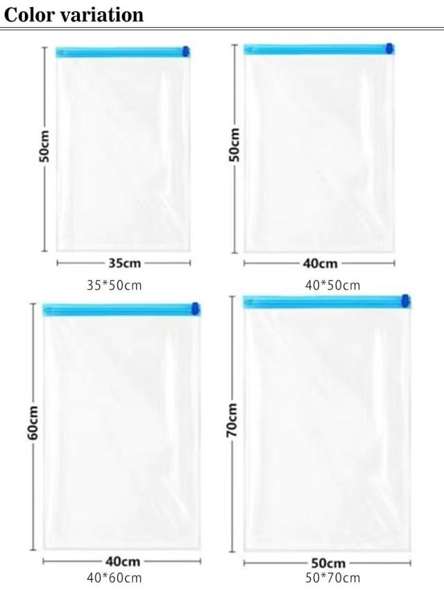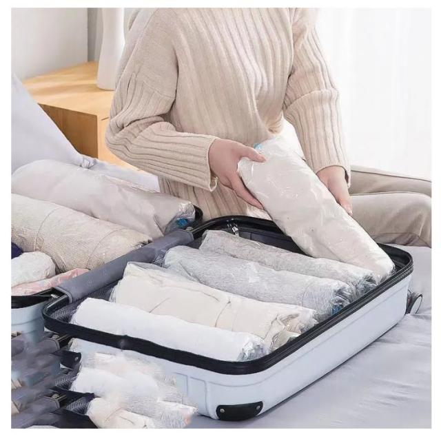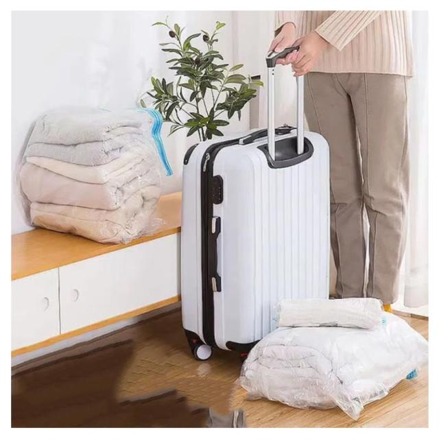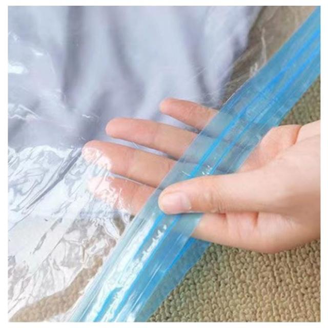 | 旅行でも出張でも衣類を簡単に収納できる圧縮袋です。 防水性と密封性に優れていますので、衣類を湿気やほこりから守ってくれます。 ポンプが不要で、手でクルクルと巻くだけで中の空気が抜けていきます。 ファスナーを閉じた後、スライダーを左右にスライドさせて密封することができます。 透明なので、中身が見えるので収納物がすぐに見つかります 。 | |