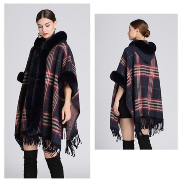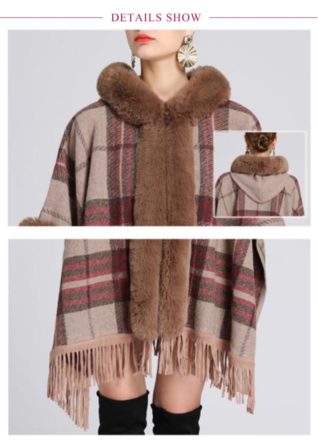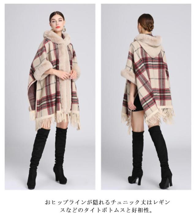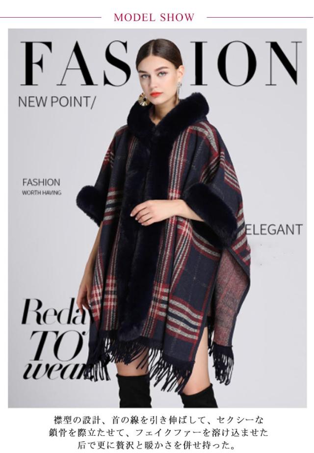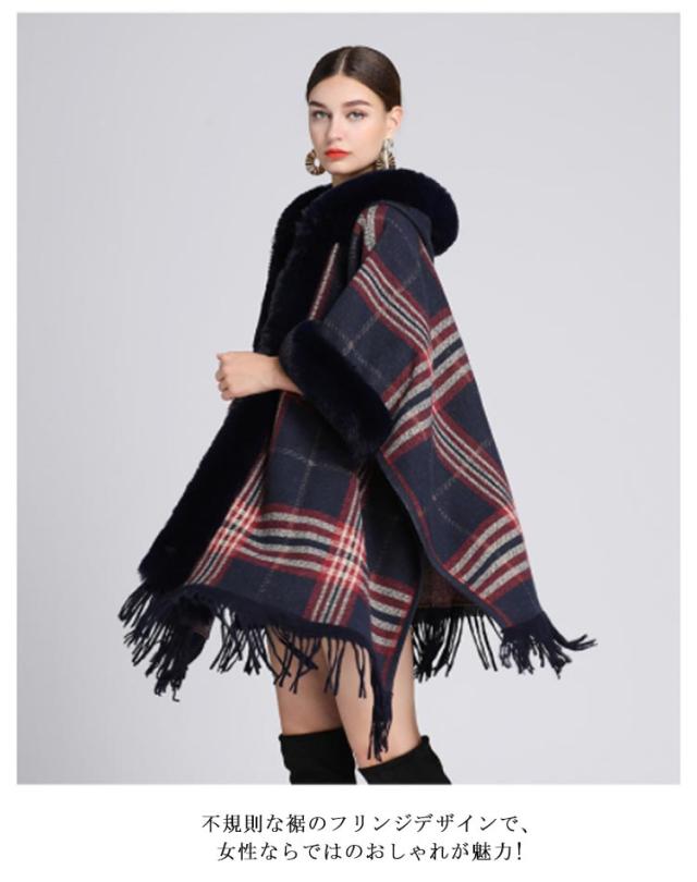 コート マント ポンチョ 羽織 ファー付きケープコート フード付き 洗える レディース アウター かわいい レディース 大人 ケープ ポンチョ アウター ケープ チェック 防寒 あったか 女性 婦人服 ファッション おしゃれ 秋 冬物 冬服 秋 ドルマン 体型カバー