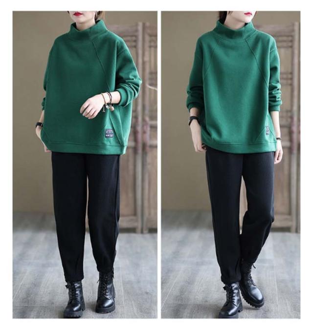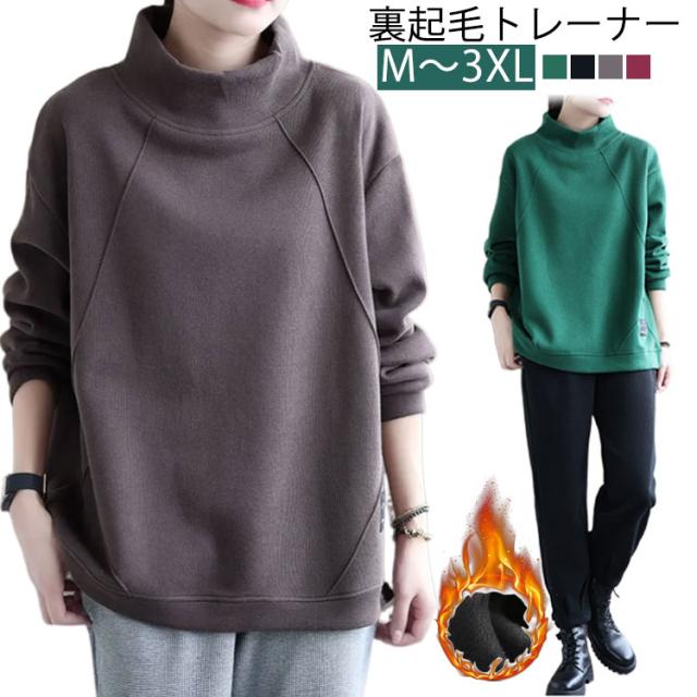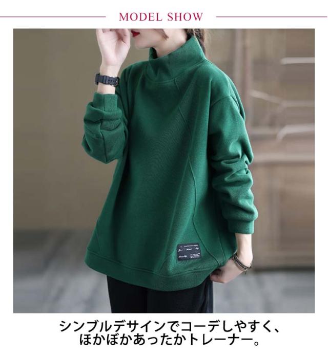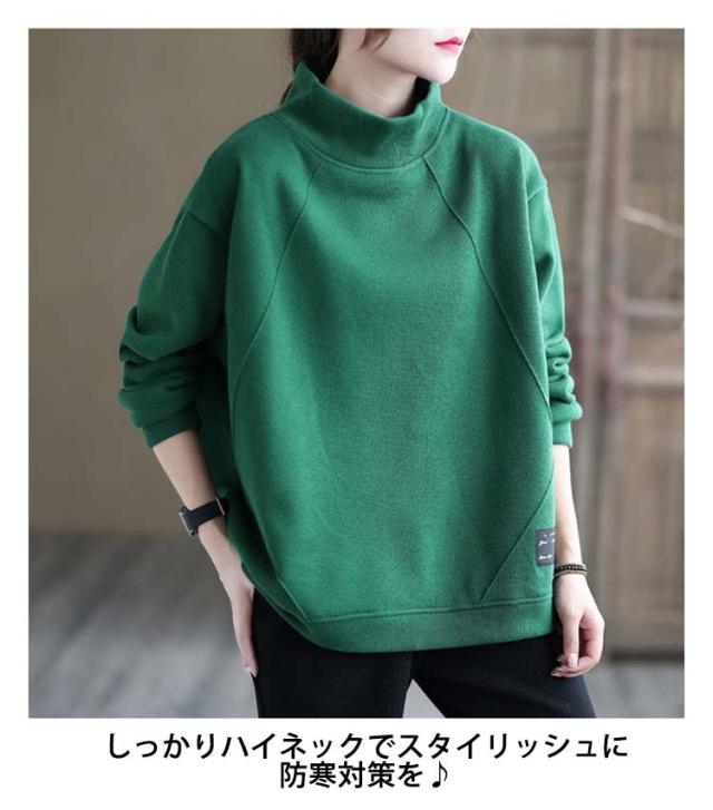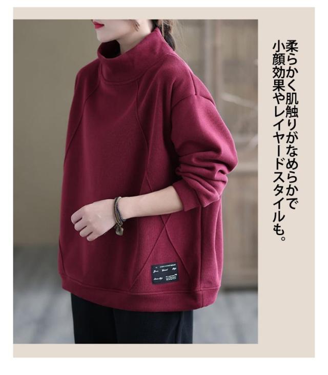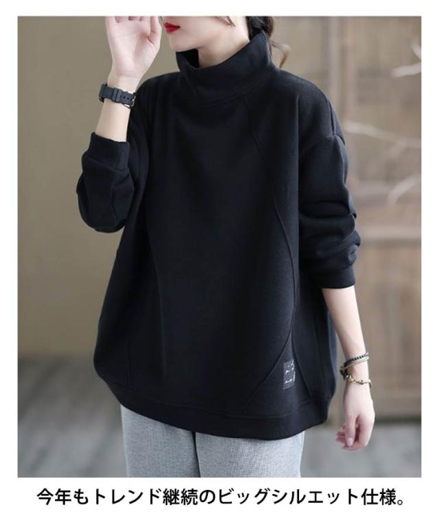 裏起毛ハイネックオーバーサイズトップス レディース トップス トレーナー スエット 裏起毛 ビッグシルエット ハイネック オーバーサイズ 大きめ あたたかい カジュアル