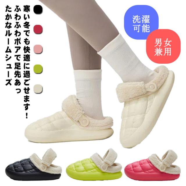 ルームシューズ ふわふわ スリッパ レディース ムートンスリッパ ボア付き 取り外せる 洗濯可能 撥水 軽量 室内履き 外履き ルームシューズ サボサンダル スリッポン もこもこ 冬用 防寒 あったか 滑り止め 男女兼用