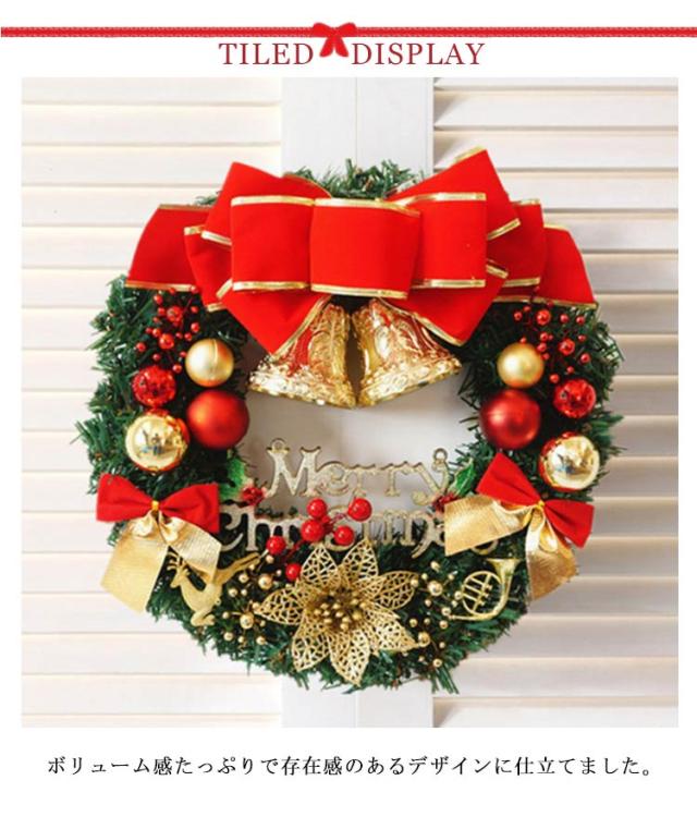 クリスマスリース 40cm 50cm 特大 玄関 外 北欧 おしゃれ リボン ベル 付き 大きい Lサイズ ボリューム 店舗 ショップ ドア 壁掛け 飾り 装飾 部屋 インテリア クリスマス 飾り クラシック 大きいサイズ