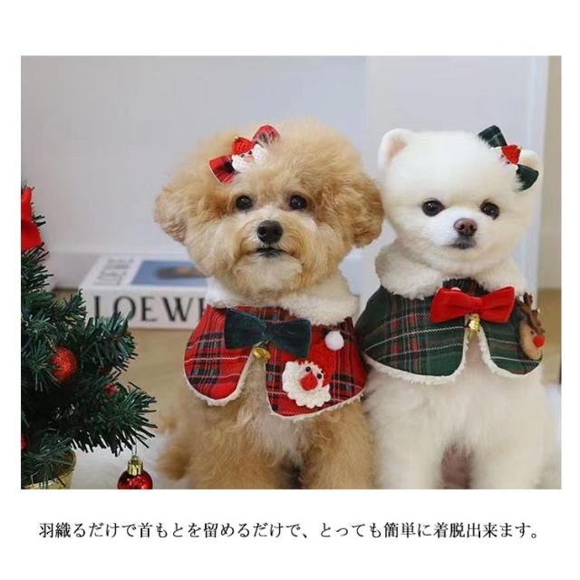 冬 犬服 クリスマス マント ヘアピン 2点セット ドッグウェア S M L 小型犬 コスプレ サンタマント 犬 服 犬用 猫用 チワワ ダックス プードル ペット服 秋冬 防寒 可愛いペット変身 犬の服 猫の服 キャットウェア 送料無料