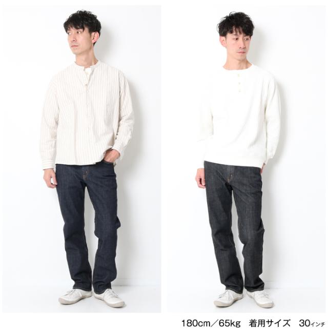 誰もがキレイに穿きこなせるストレートジーンズは、ジャストサイズでキレイめに、サイズアップでアメカジ風にもコーディネートできるジーンズです。