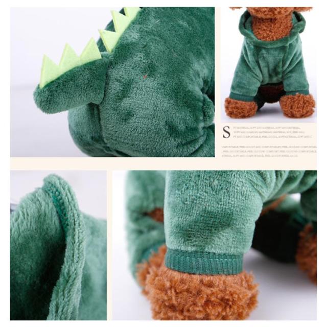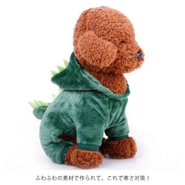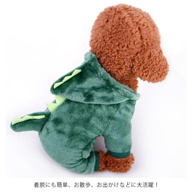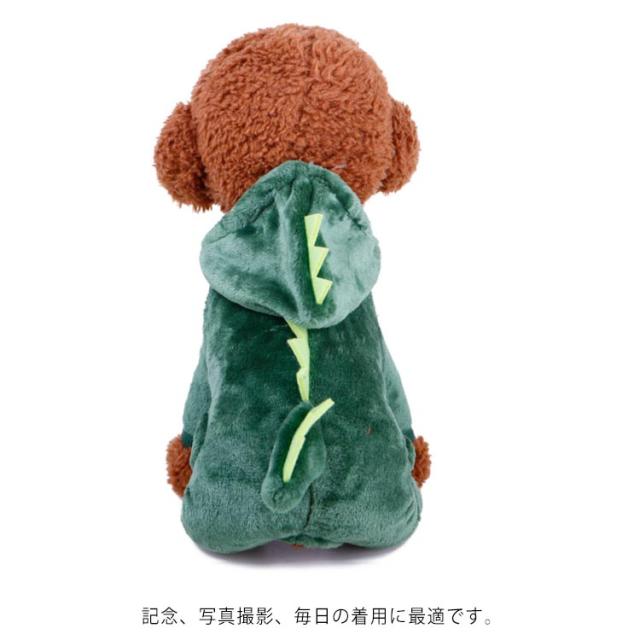 犬服 ペット服 ドッグウェア コスチューム 犬用 恐竜 秋冬服 四足 可愛い 柔らかい フード付き 防寒 仮装 コスプレ 小中型犬服 猫服 変装 ペット用品 脱毛保護 お散歩 お出かけ クリスマス 送料無料