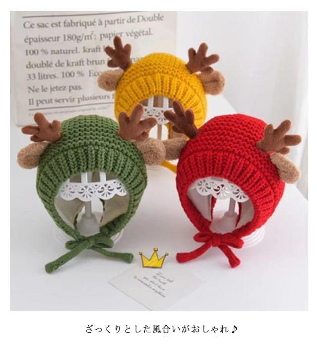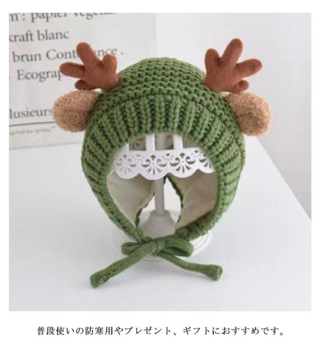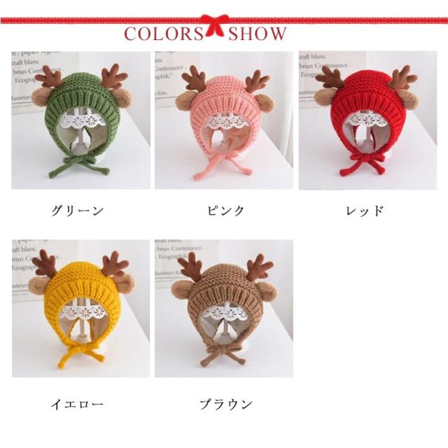 ニットキャップ ニット帽 耳付き 帽子 子供 裏地付き トナカイ耳 男の子 女の子 ベビー キッズ 赤ちゃん 暖かい 保温 可愛い ギフト クリスマス 寒さ対策 お出かけ 秋 冬 幼稚園 保育園 クリスマスイベンド 全5色