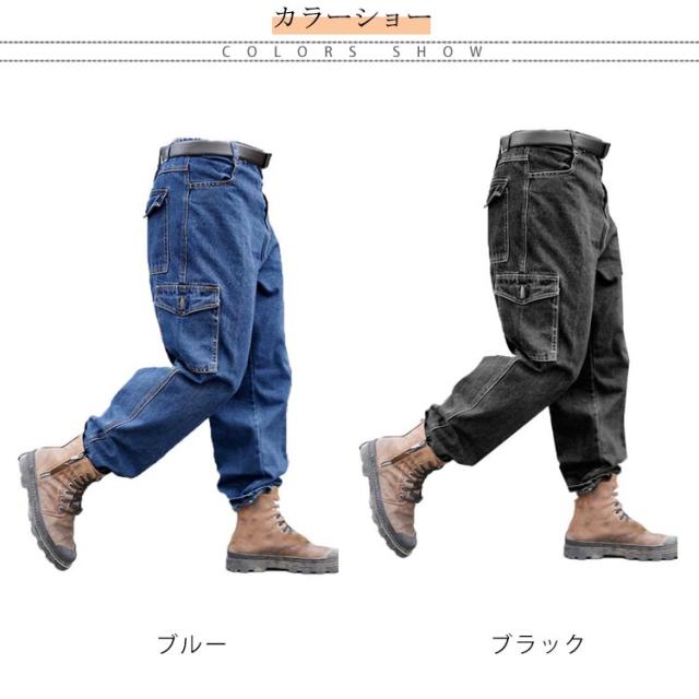 デニム カーゴパンツ メンズ 作業ズボン 作業服 大きいサイズ ゆったり ジーンズ デニムパンツ 作業着 ワークウェア ワイドパンツ ジーパン Gパン イージーパンツ ボトム ボトムス デニムカーゴ 送料無料 おしゃれ オシャレ 大人 30代 40代 50代 春 夏 秋 冬