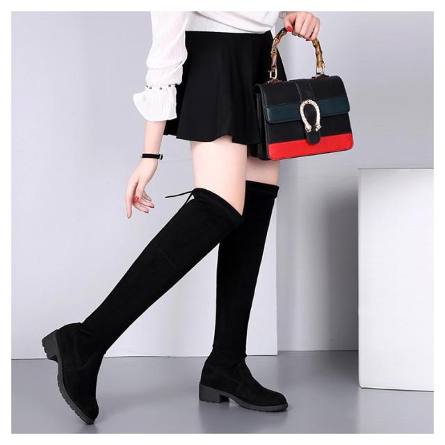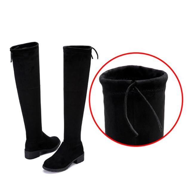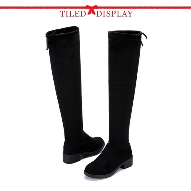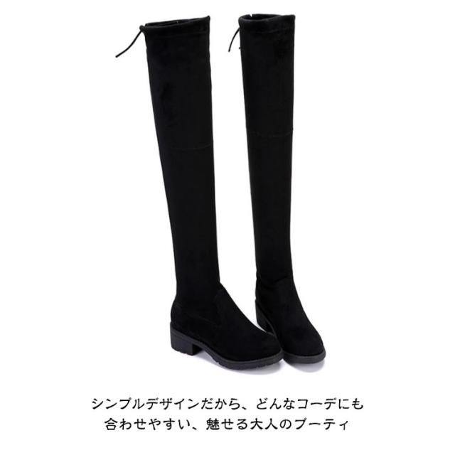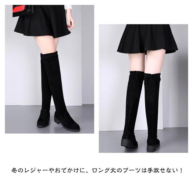 ストレッチブーツ ニーハイブーツ レディース ローヒール ロングブーツ 裏起毛 防寒 膝上 大きいサイズ 美脚 靴 歩きやすい 細見せ 秋 冬 黒 ブラック スエード調 ファッション カジュアルシューズ 痛くない 疲れない