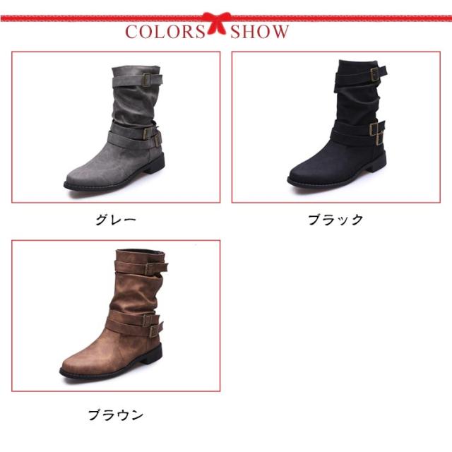 | 流行に左右されない足首ベルトは、アクセントになって足首が細く見えるレディースブーツです♪ 美脚も歩きやすさも叶えるローヒールや広めの履き口など、お洒落にも履きやすさにもこだわったアイテム。 ツヤを抑えた高級感あるフェイクレザー素材はくしゅっとニュアンスたっぷりの柔らかな生地だから、いつものコーデも一気にこなれた印象になる。 履き口のくしゅ感がスキニーやブーツインに合わせると絶妙♪ 長時間履いても疲れないので、旅行やアウトドア、ライブで履くのもオススメです。 マニッシュなパンツスタイルはもちろん、スカートやワンピースのかわいい系コーディネイトにも良く合います! | |