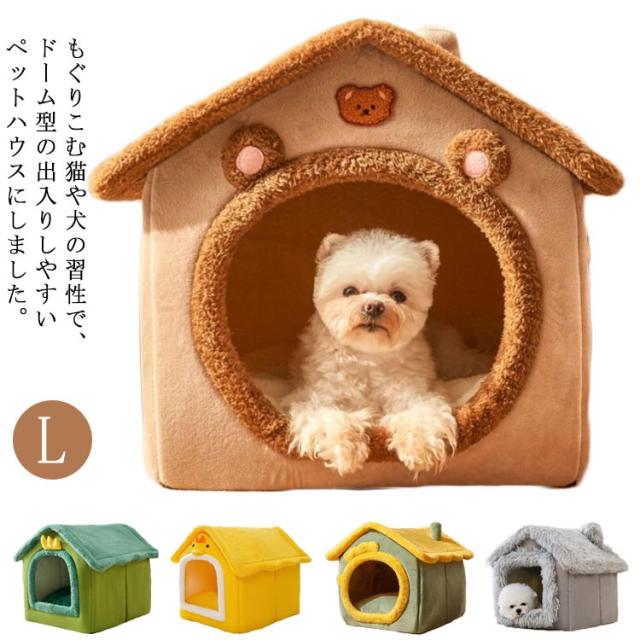 猫 ペット ハウス 犬 ハウス ドーム型 室内用 犬小屋 大型犬 屋根付き 大きいサイズ 冬 暖かい Lサイズ 犬小屋 三角屋根 クッション付き 折りたたみ 収納可能 保温防寒 ぐっすり眠れる 寒さ対策 キャットハウス