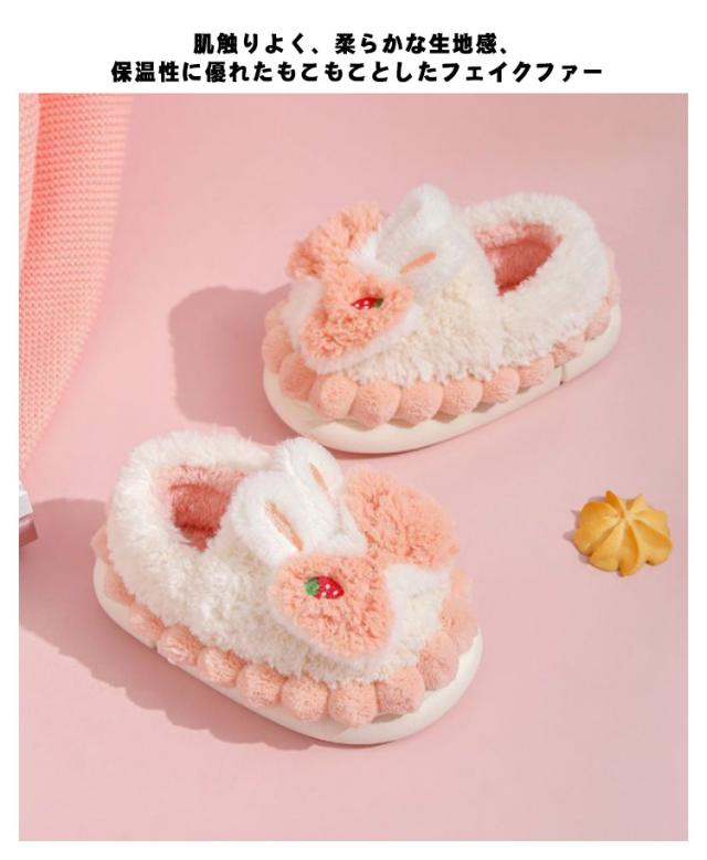 送料無料 ルームシューズ キッズ もこもこ うさ耳付き うさぎ 冷え対策 寒さ防止 スリッパ 子供 室内履き あったか フェイクファー ファースリッパ 子供スリッパ 室内スリッパ 冬スリッパ 来客 厚底 あったか 暖かい 防寒対策 可愛い 女の子 男の子 冬