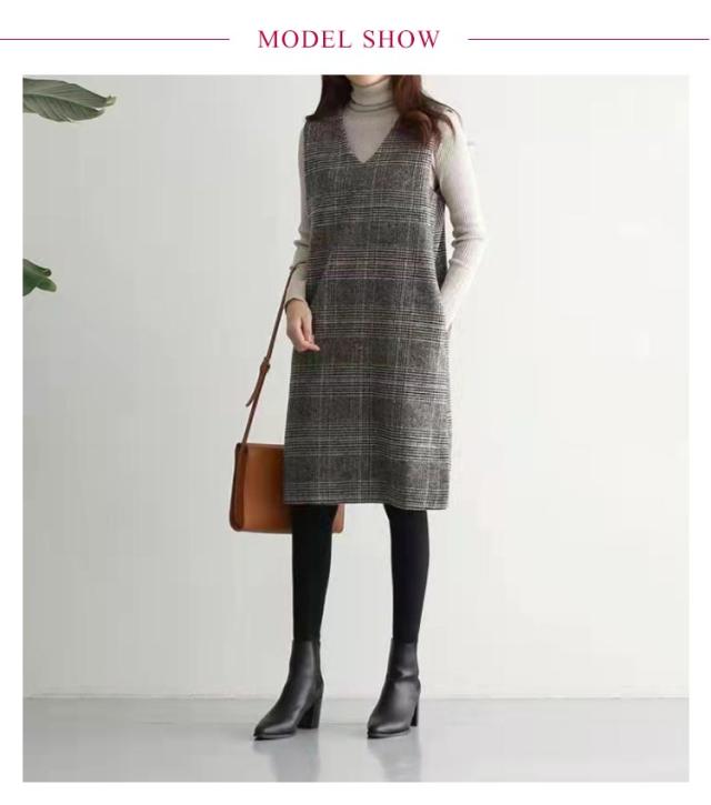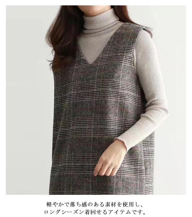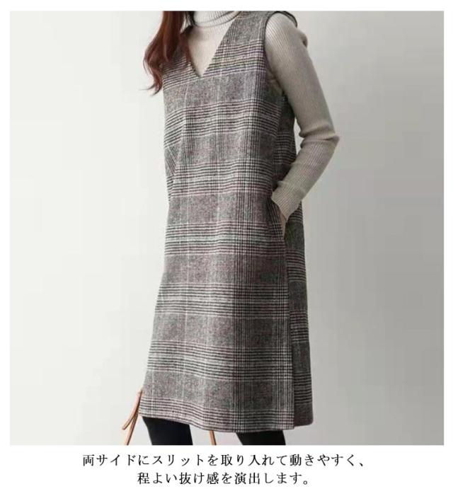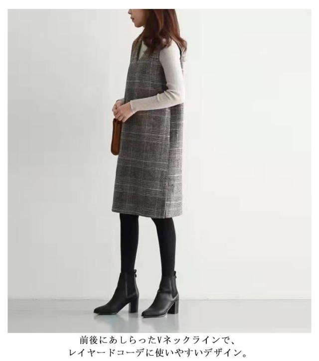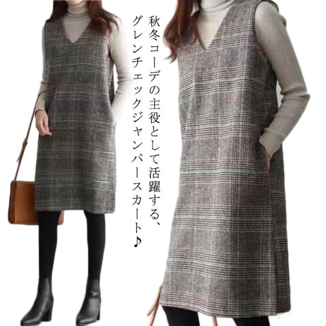 ワンピース ジャンパースカート 秋 グレンチェック レディース 大人 ジャンスカ Vネック オールインワン ワンピ ノースリーブ タンクワンピース 重ね着 おしゃれ 着痩せ 春 秋 冬 送料無料