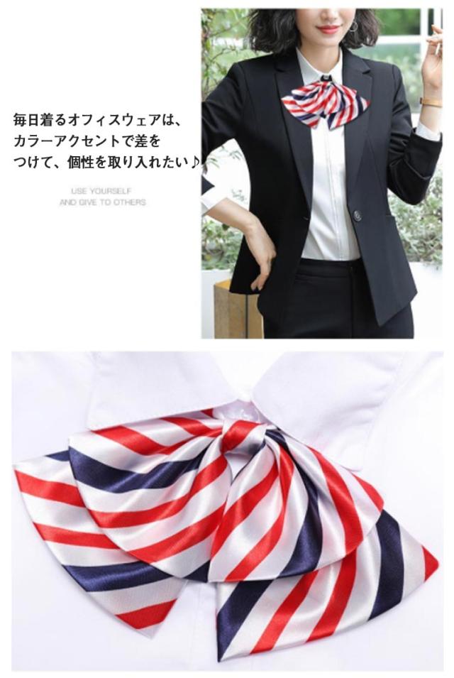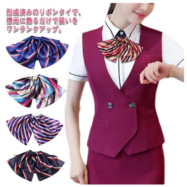 ワンタッチリボン リボンタイ アジャスター付 事務服 バックル仕様 オフィス 制服 キャビンアテンダント ホテル 営業 受付 接客 おしゃれ ビジネス 仕事服 フリーサイズ ストライプ柄 ドット柄 全17色