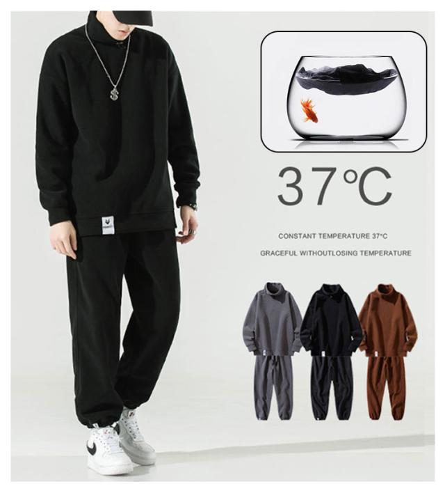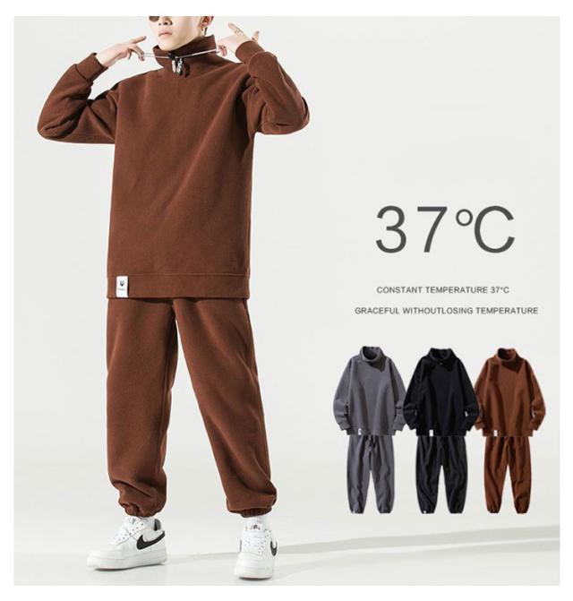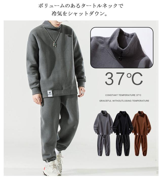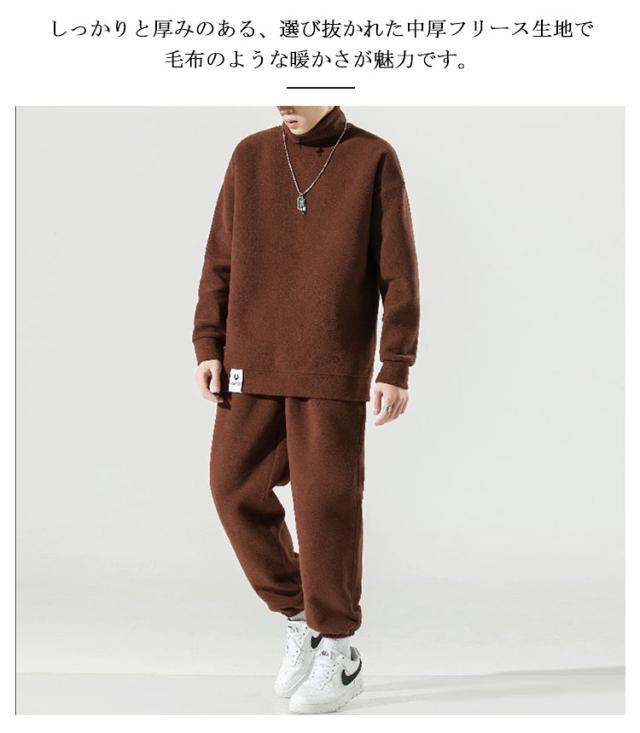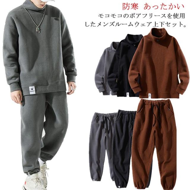 パジャマ メンズ 上下セット フリース ふわふわ あったか 秋冬 長袖 タートルネック 大きいサイズ セットアップ スウェット 部屋着 ルームウェア 着る毛布 寝巻き おしゃれ 暖かい パンツシンプル 無地 黒 ブラウン グレー