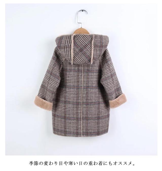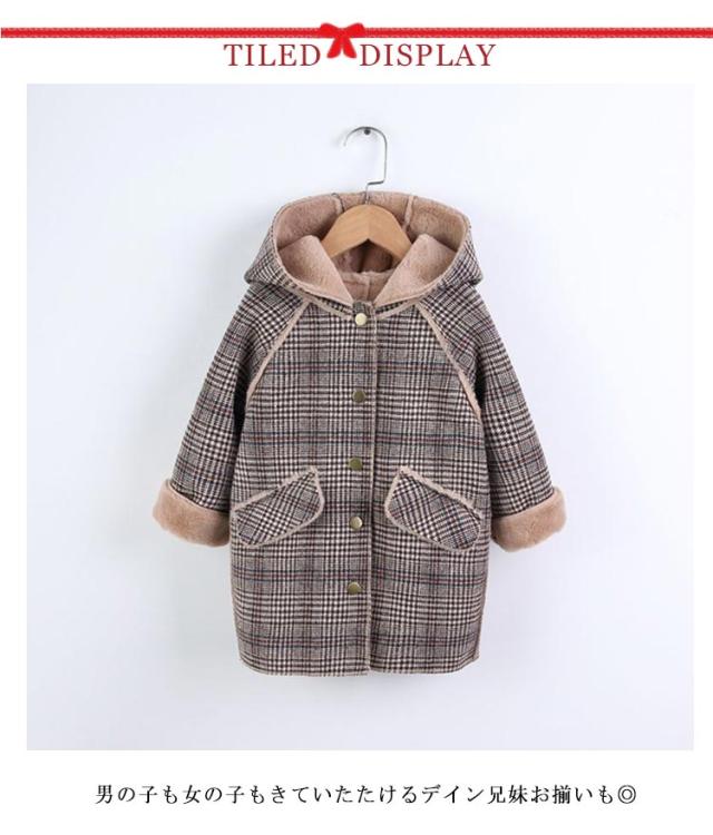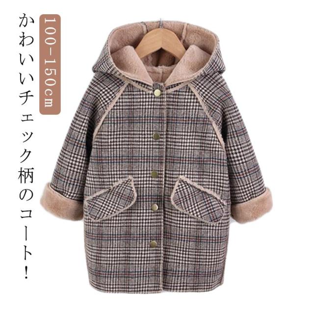 子供服 裏ボアコート 防寒 チェック柄 キッズ 裏起毛 アウター 女の子 男の子 ジュニア 厚手 フード付き 秋冬 長袖 ロング ジャケット ラシャコート あつたか 暖かい 100 110 120 130 140 150