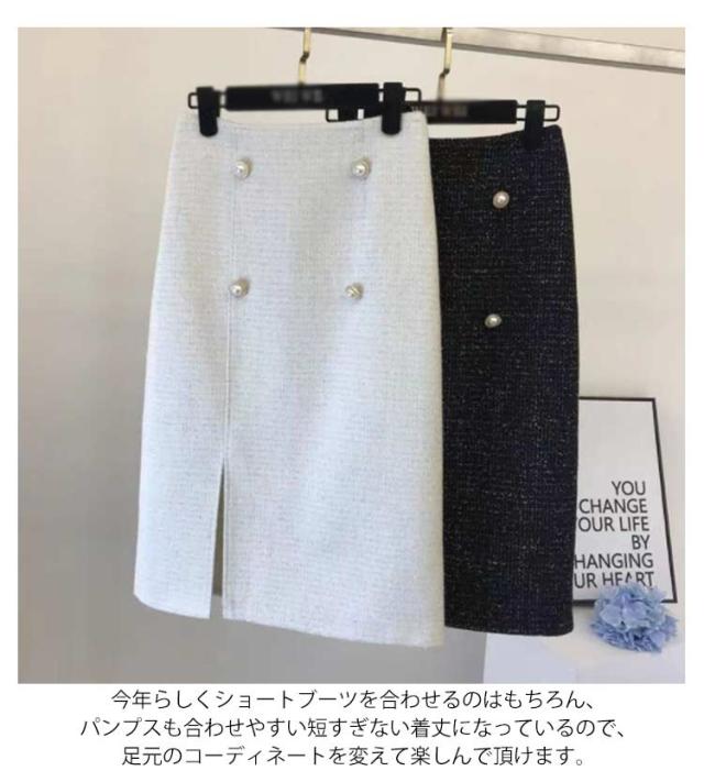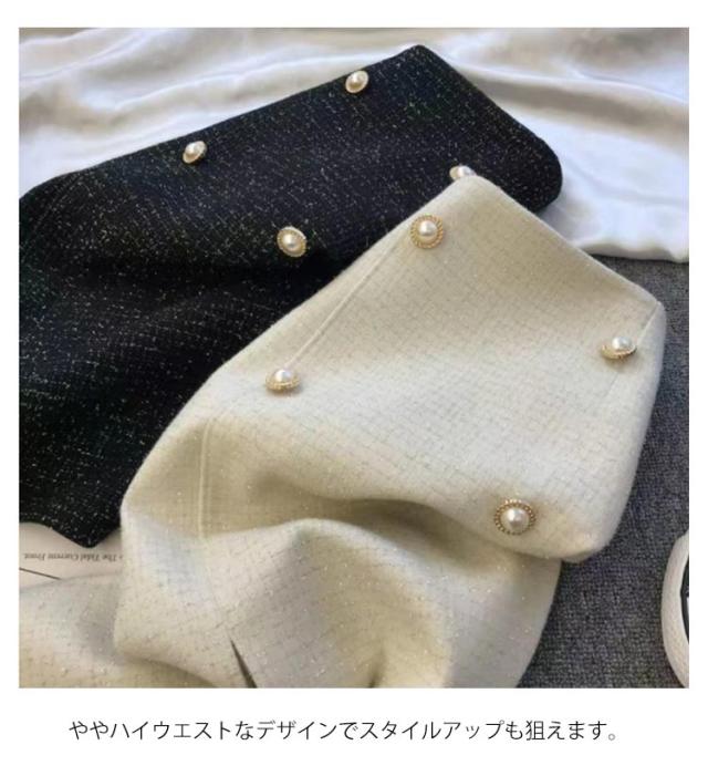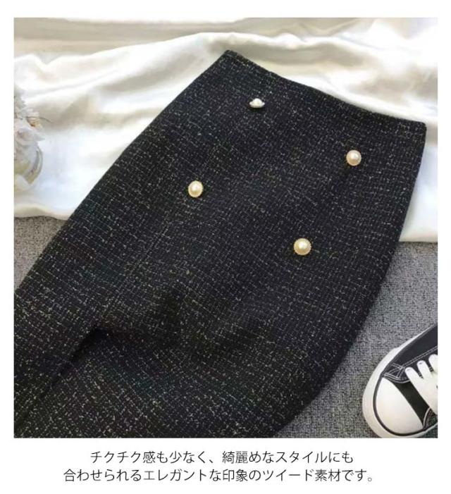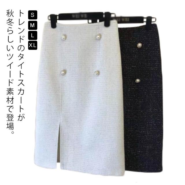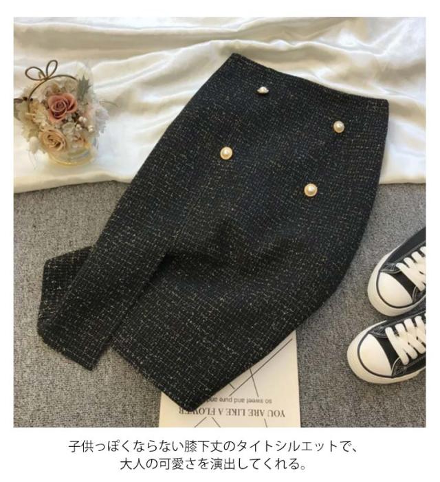 送料無料 タイトスカート ツイード スカート レディース ロングスカート ロング 膝下丈 ひざ下 ミディ丈 チェック柄 きらきら パールボタン ボトムス ペンシルスカート 大人 フェミニン きれいめ 上品 秋冬 秋 冬 通勤 オフィス フォーマル 入学式 卒業式 結婚式