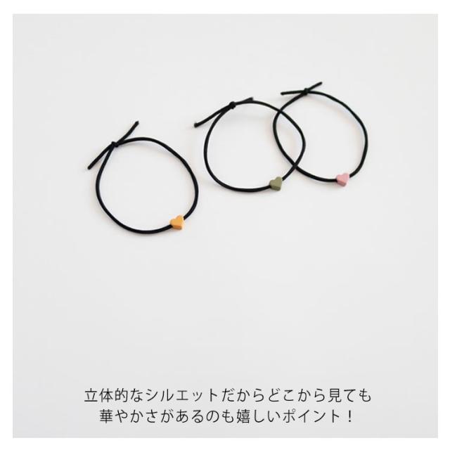 | コロンとした小さなハートがとってもキュートなヘアゴム。 束になったデザインがシンプルながら大人っぽくおしゃれ! シンプルな仕上がりなので普段着にもおしゃれ着にもぴったり。 | |