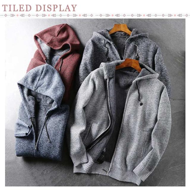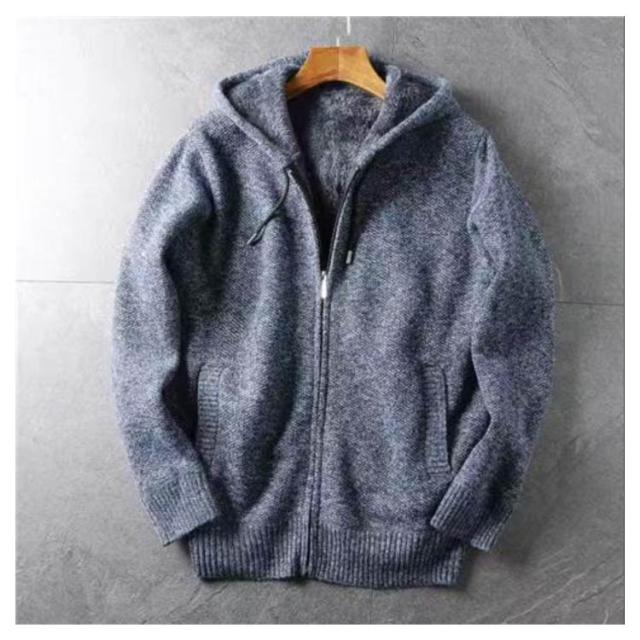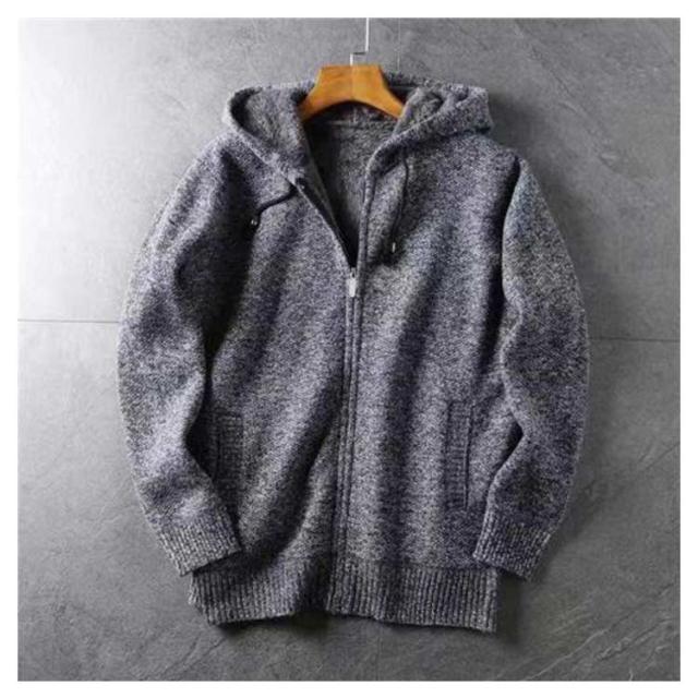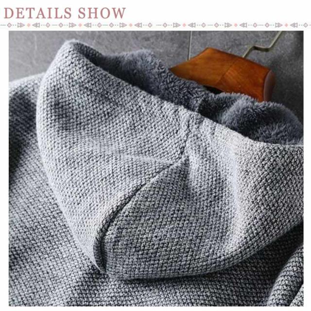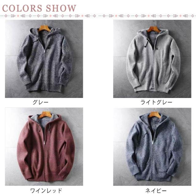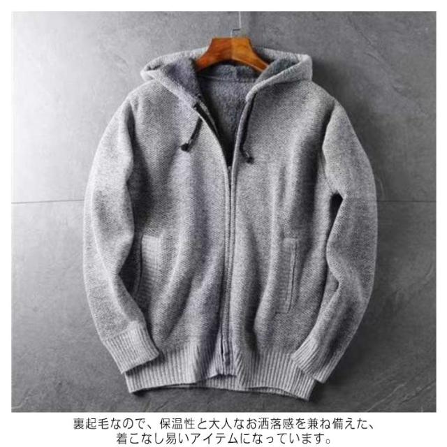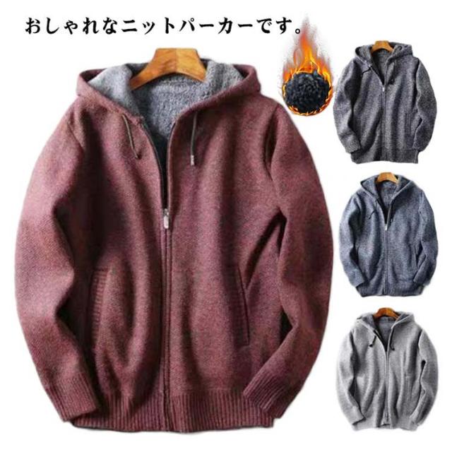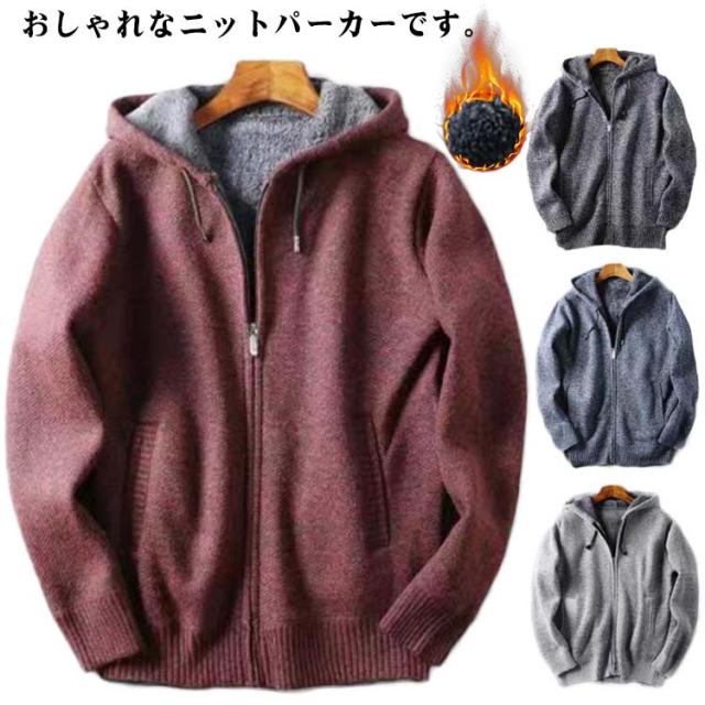 送料無料 ニット パーカー 裏起毛 フード付き 長袖 ジップアップ ジャケット ジップパーカー ニットカーディガン 防寒 羽織り 暖かい 秋 冬 おしゃれ ビジネス メンズファッション M L XL 2XL 3XL