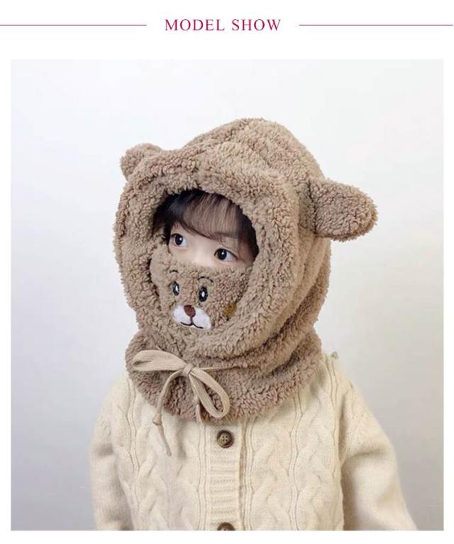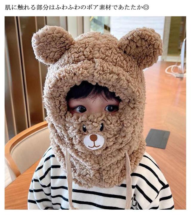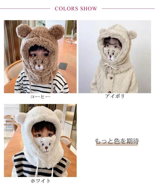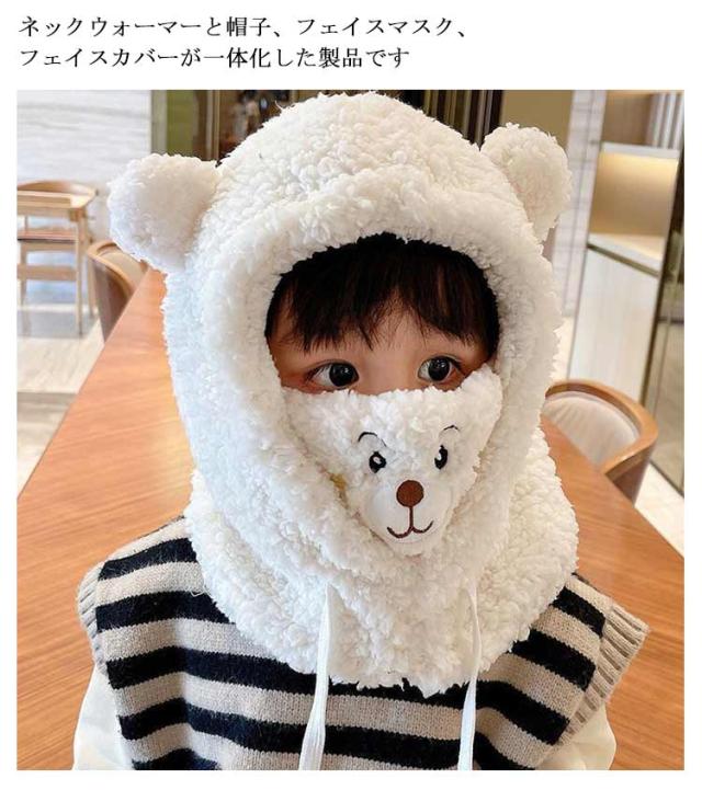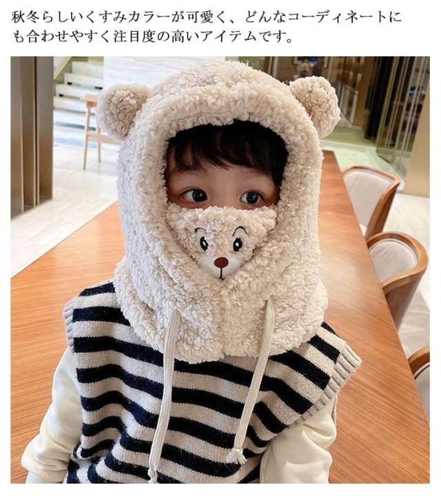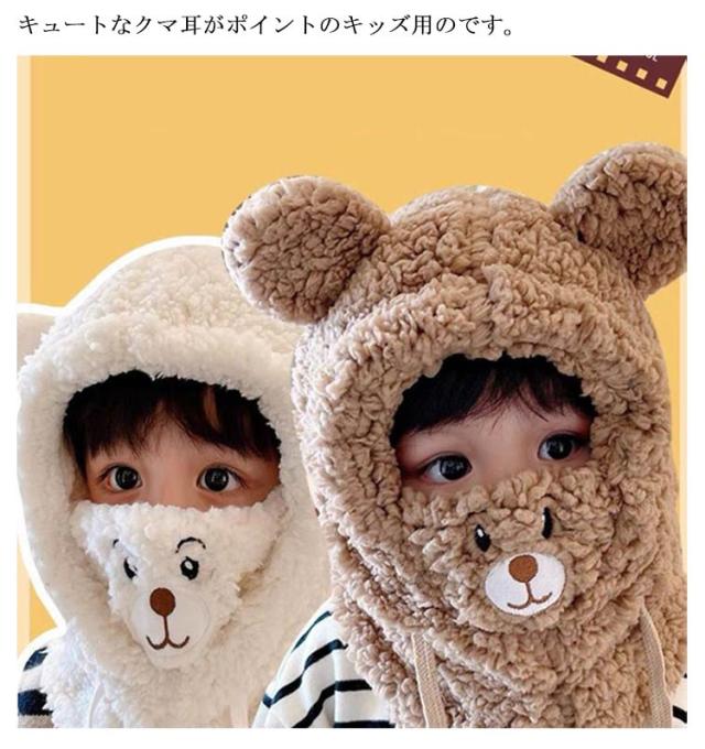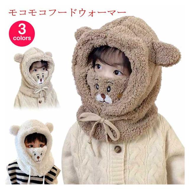 モコモコ 耳付きフードウォーマー キッズ 女の子 男の子 帽子 クマ 韓国子供服 ネックウォーマー メンズ レディース フェイスガード 防寒 帽子 キッズ ジュニア 耳付きフードウォーマー 大人用 サイズ調整可能