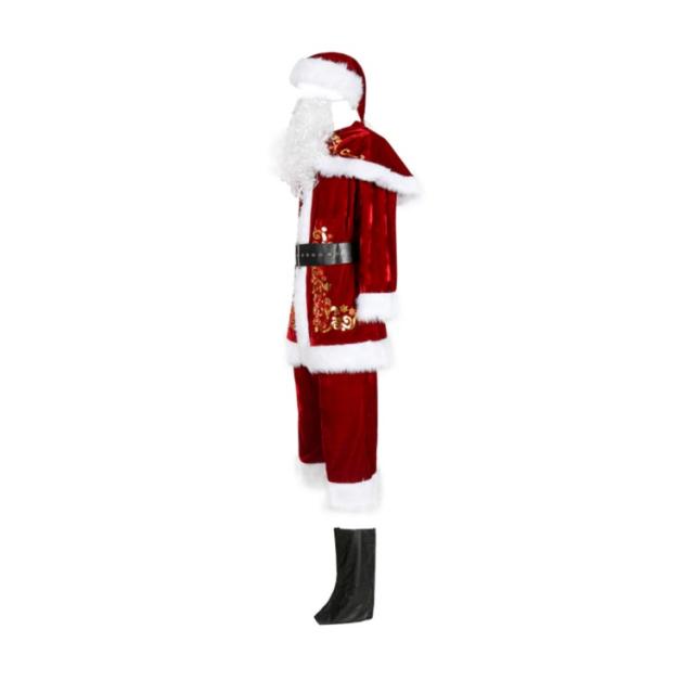 M-4XL サンタクロース コスプレ 衣装 メンズ 9点セット クリスマス衣装 男性 大人 サンタコス コスチューム ひげ かつら サンタ帽子 コスチューム 本格的 イベント パーティー 大きいサイズ ハロウィン 仮装 北欧 上品 ベロア ベルベット ふわふわ フェイクファー