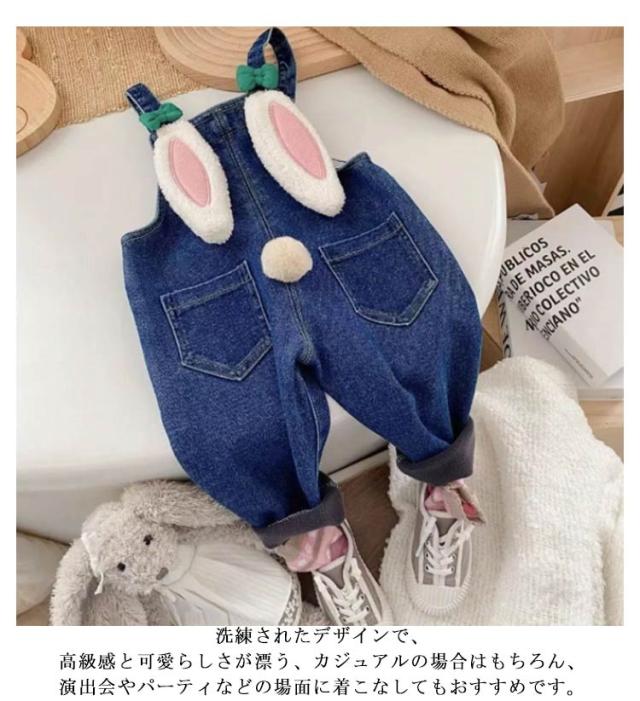 | 裏起毛、かわいいウサギ耳×しっぽ付きのデニムサロペットです。 洗練されたデザインで、高級感と可愛らしさが漂う、カジュアルの場合はもちろん、演出会やパーティなどの場面に着こなしてもおすすめです。 秋冬にピッタリ!普段着、入園、お入学、お出かけ、旅行などに大活躍。 | |