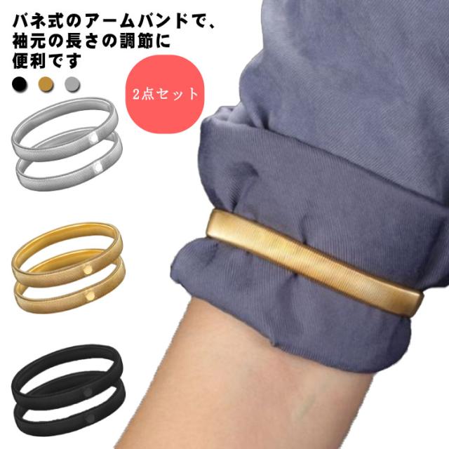 アームバンド 2点セット アームクリップ 袖 アームベルト 金属製 止め シルバー Yシャツ 結婚式 ブラック 腕 両腕用 送料無料 スーツ ワイシャツ バンドバネ フォーマル 伸縮バネ 家事 入学式 ビジネス 水仕事 カジュアル メンズ レディース ループ式 ゴールド 男女兼用