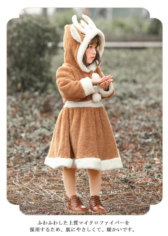クリスマス 衣装 子供 トナカイ コスプレ コスチューム キッズ 女の子 トナカイ 着ぐるみ ワンピース 耳付き サンタコスプレ トナカイ 仮装 変装 演出服 かわいい 80 90 100 110 120 130 140 150 ルームウェア 部屋着 暖かい 【送無】